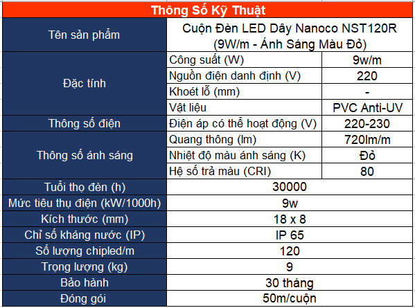 | Thông số kỹ thuật | Đèn LED dây ngoài trời |
