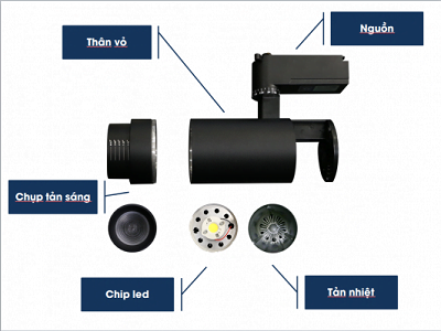 Thiết kế : Đèn rọi ray led là dòng thiết bị chiếu sáng này có thiết kế khác biệt hoàn toàn với các dòng đèn khác. Sản phẩm có cấu tạo khá cầu kỳ: