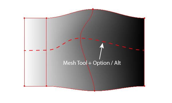 Để xóa một đường lưới, chọn công cụ Gradient Mesh Tool (U), click vào nó và nhấn giữ phím Alt (hoặc Option)
