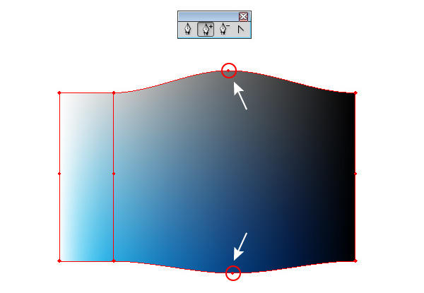 Hãy chú ý phần đỉnh cao và thấp nhất của đối tượng, Các đoạn này có những điểm vô hình mà chúng ta chỉ nhìn thấy khi sử dụng công cụ Add Anchor Point Tool