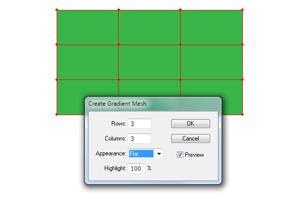 Vào menu Object > Create Gradient Mesh, chúng ta có thể xác định số lượng hàng và cột trong hộp thoại :