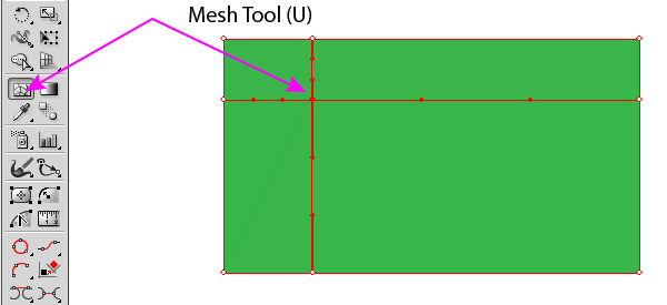 Cách thứ hai để tạo Gradient Mesh là sử dụng công cụ Gradient Mesh Tool (U). Để làm được như vậy, bạn chỉ cần chọn công cụ và nhấp vào vị trí bạn muốn tạo mắt lưới đầu tiên trong đối tượng vector :