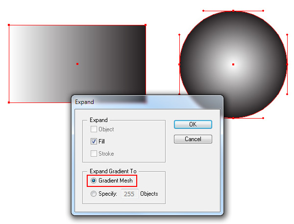 Chọn đối tượng, sau đó vào menu Object > Expand… và chọn tùy chọn Gradient Mesh trong hộp thoại :