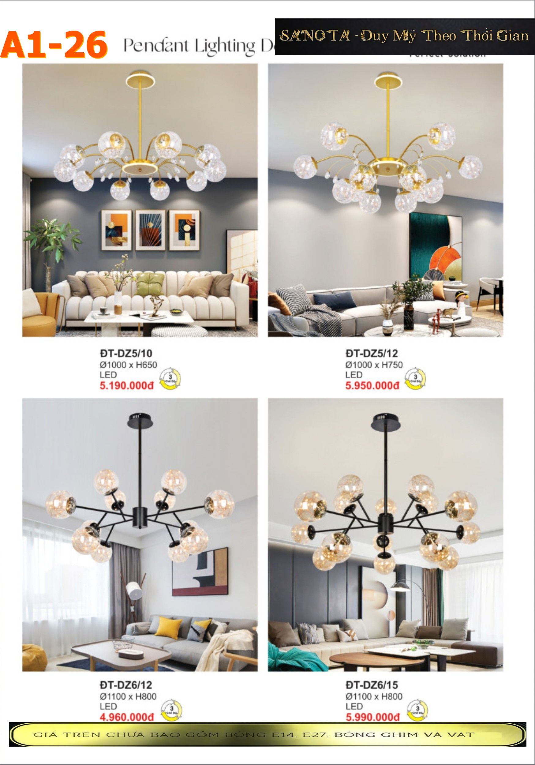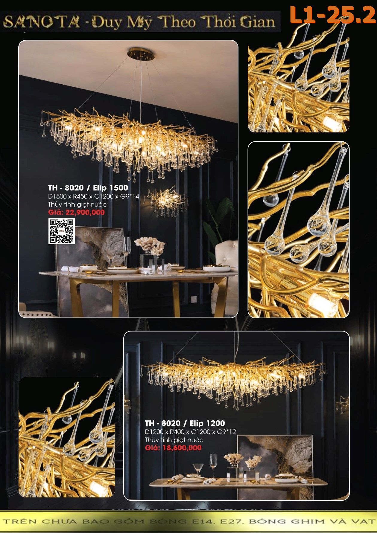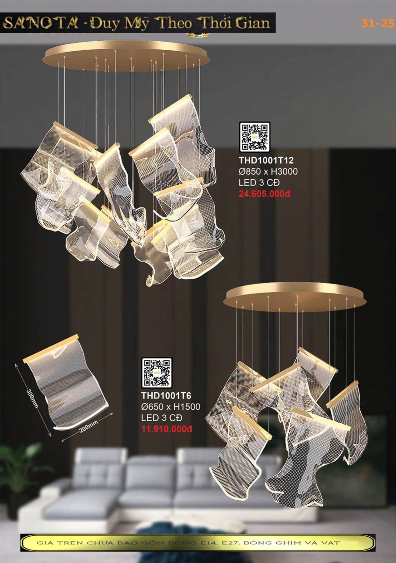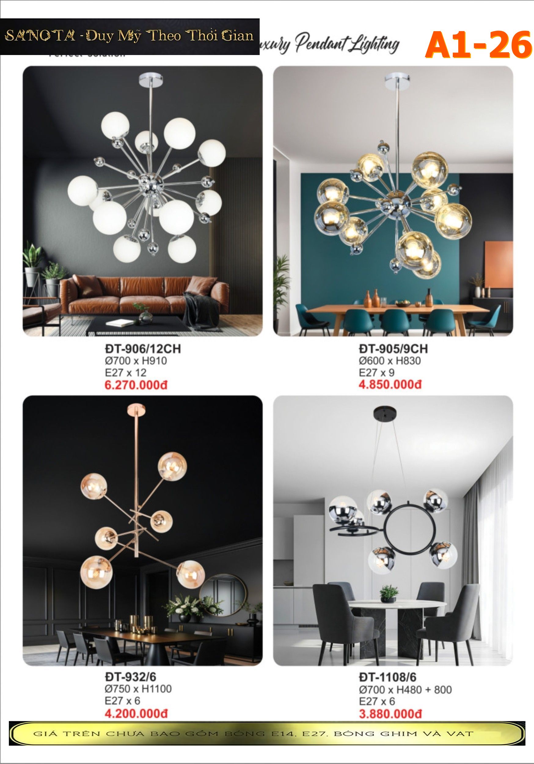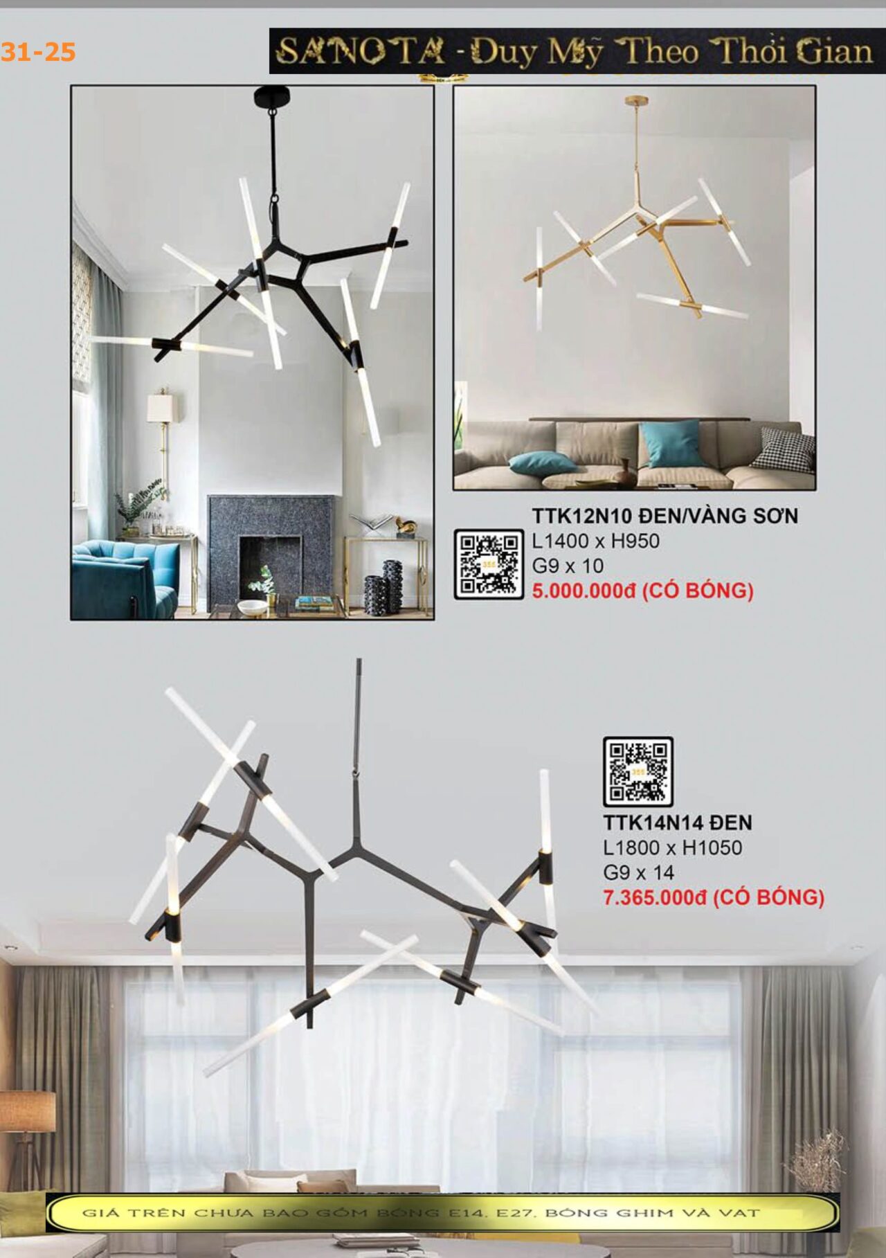 Đèn chùm hiện đại là loại đèn trang trí cao cấp với thiết kế sáng tạo và tinh tế, mang đến vẻ đẹp sang trọng và phong cách cho không gian nội thất. Khác với đèn chùm cổ điển có thiết kế cầu kỳ, phức tạp, đèn chùm hiện đại tập trung vào các đường nét tối giản, hình khối độc đáo và sử dụng chất liệu mới mẻ để tạo nên một phong cách vừa thanh lịch vừa thời thượng.