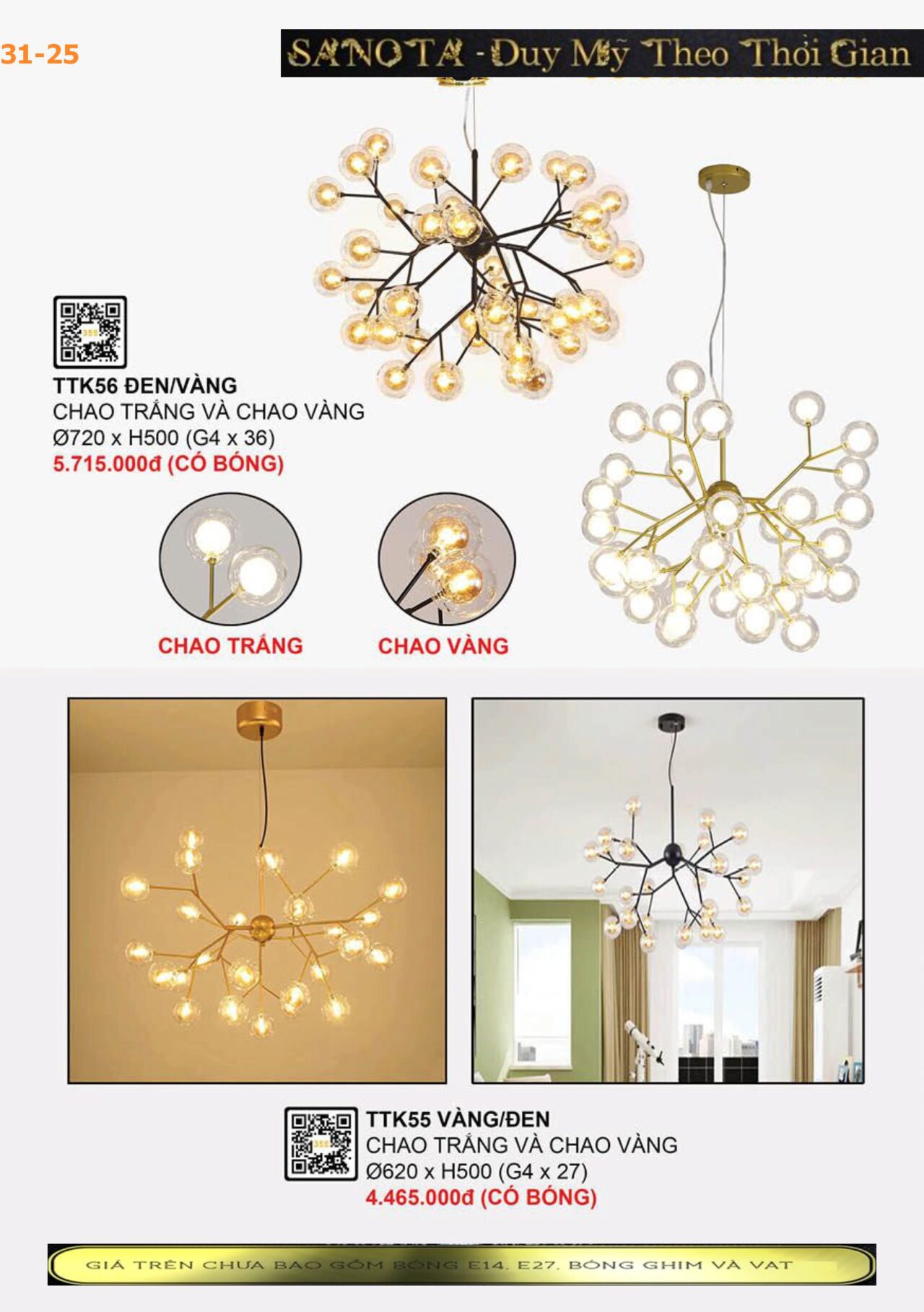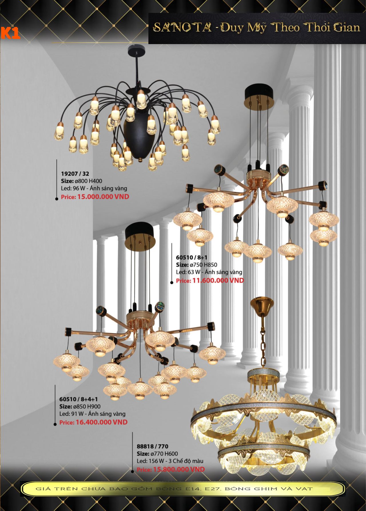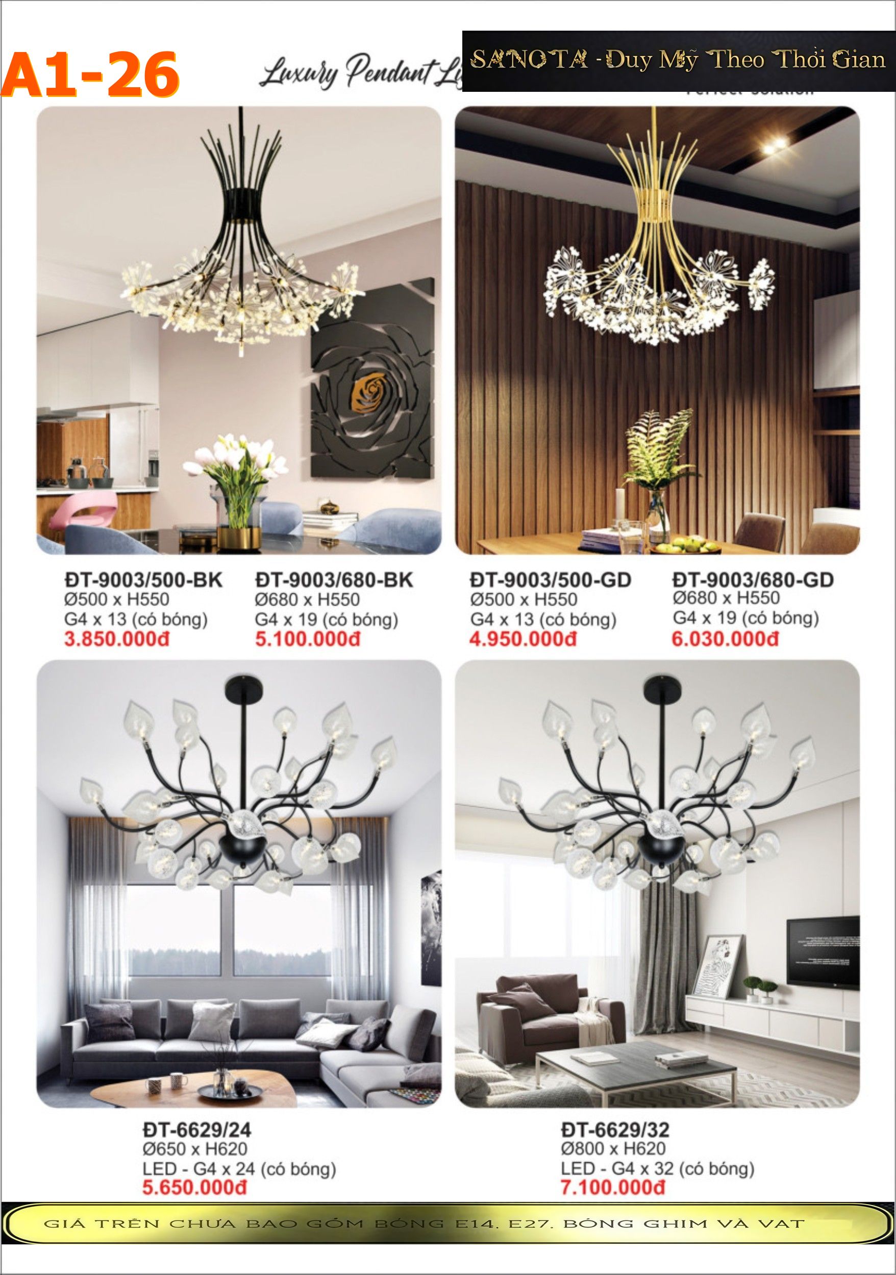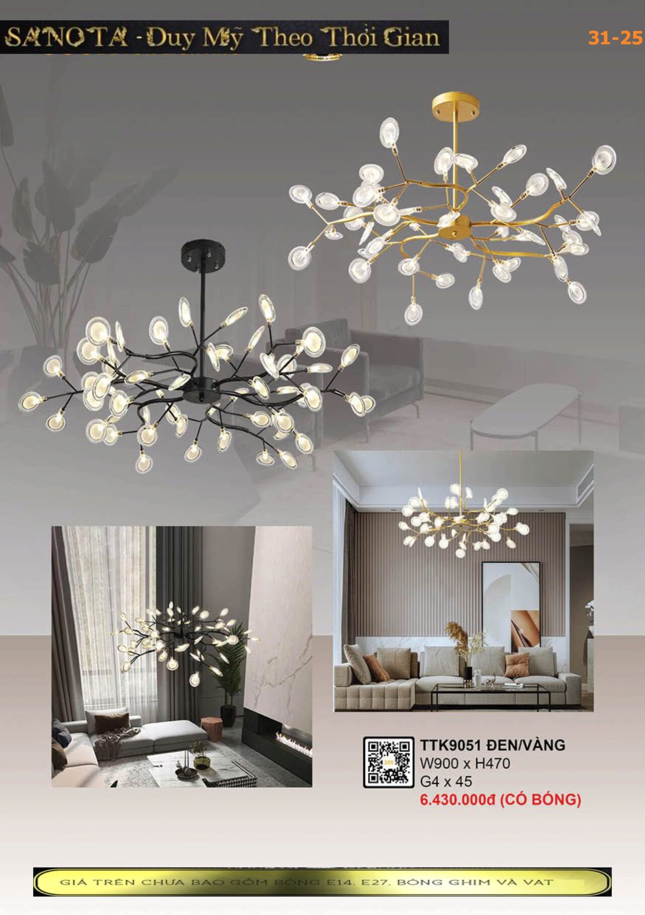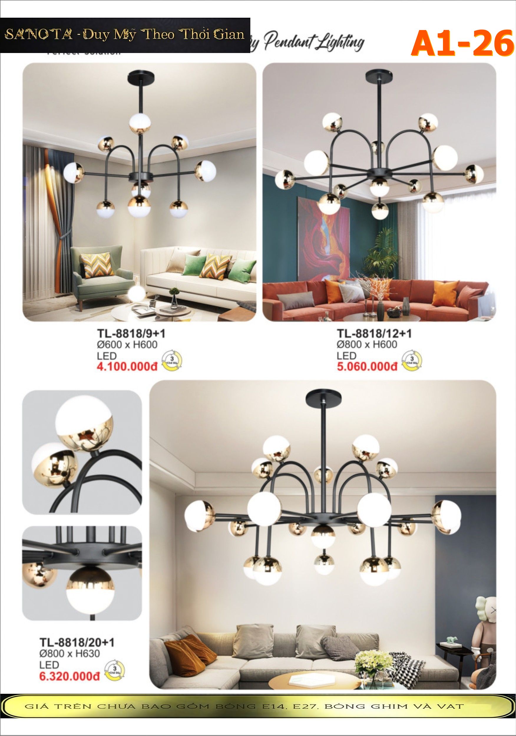 Đèn chùm hiện đại là loại đèn trang trí cao cấp với thiết kế sáng tạo và tinh tế, mang đến vẻ đẹp sang trọng và phong cách cho không gian nội thất. Khác với đèn chùm cổ điển có thiết kế cầu kỳ, phức tạp, đèn chùm hiện đại tập trung vào các đường nét tối giản, hình khối độc đáo và sử dụng chất liệu mới mẻ để tạo nên một phong cách vừa thanh lịch vừa thời thượng.