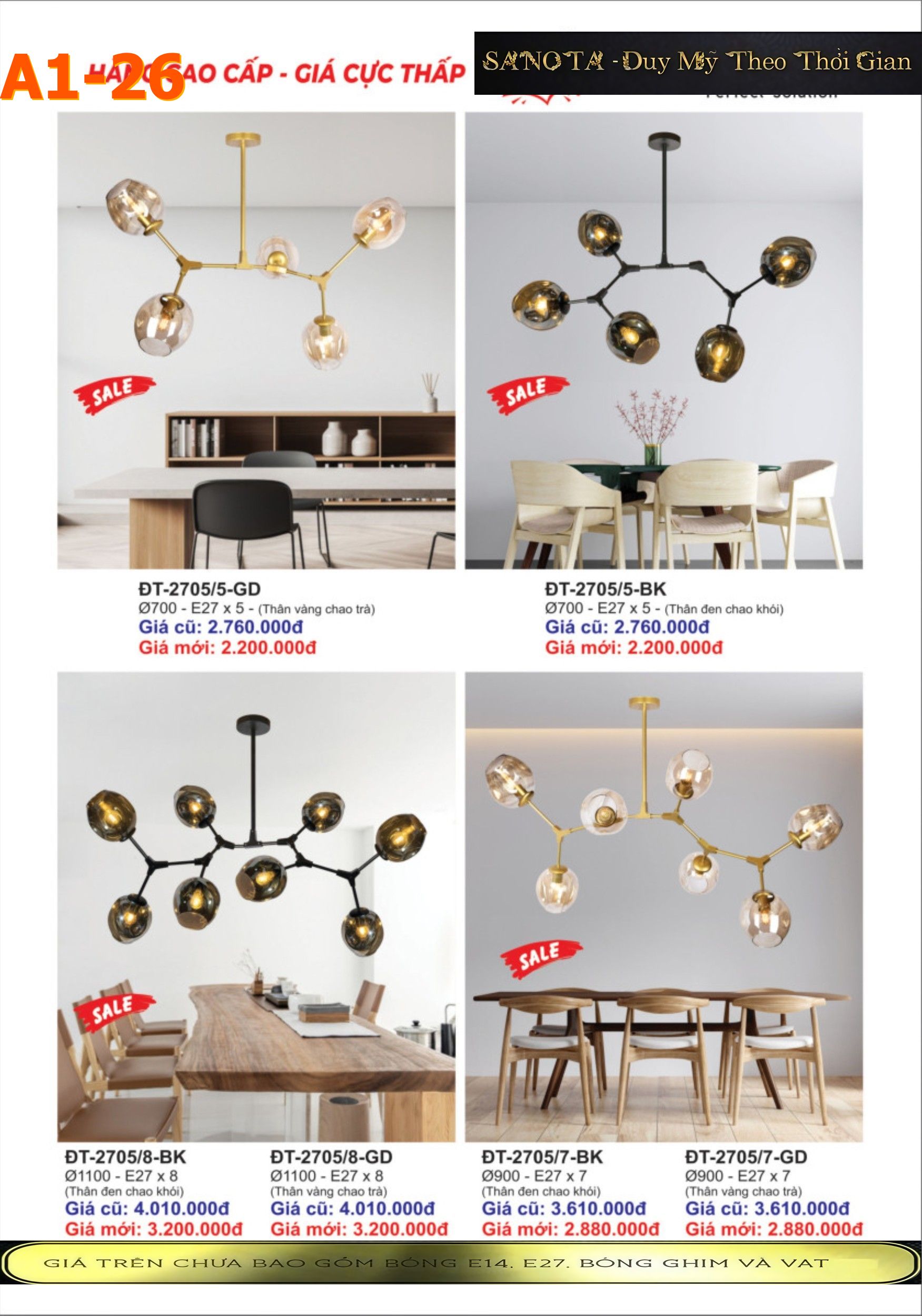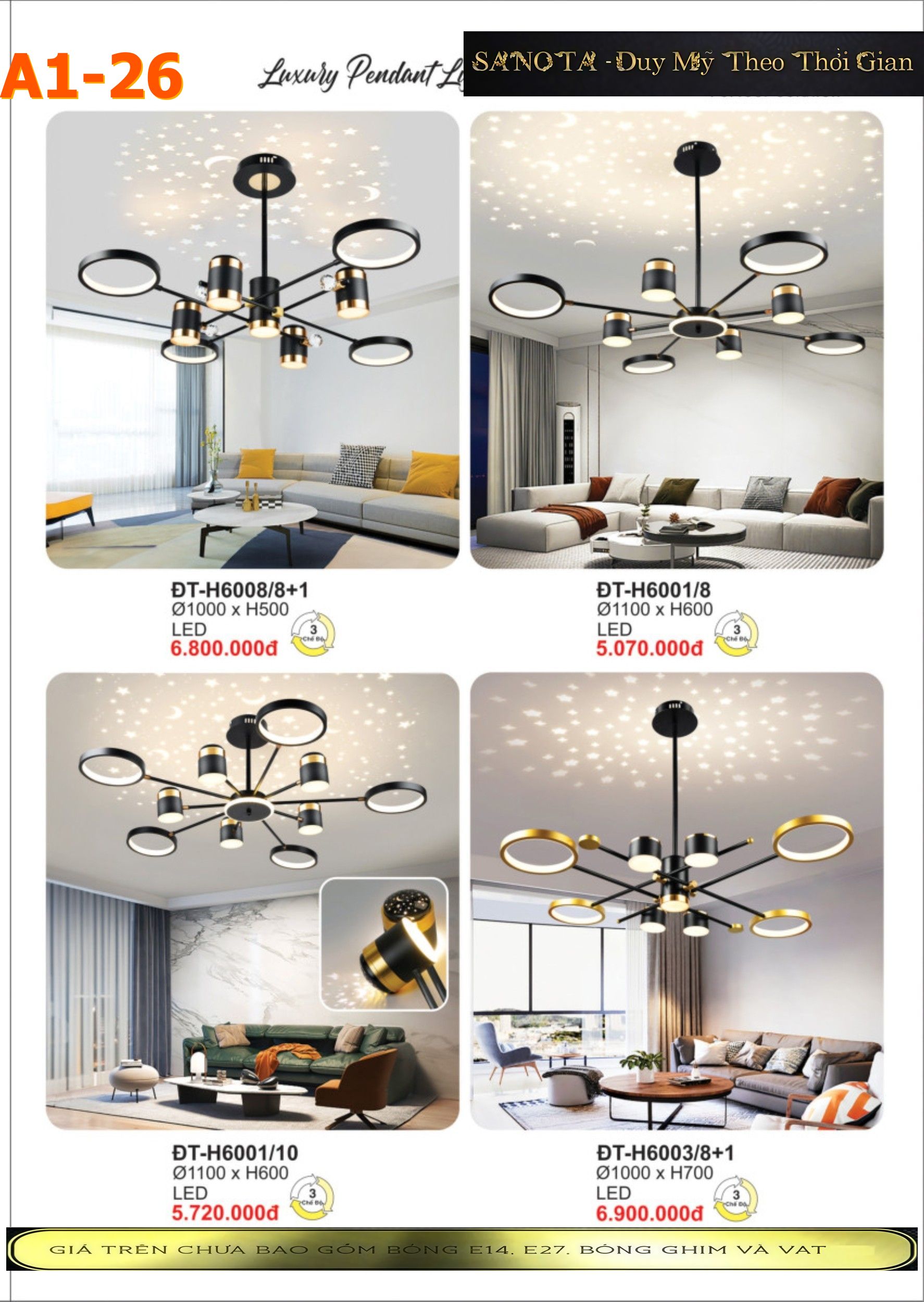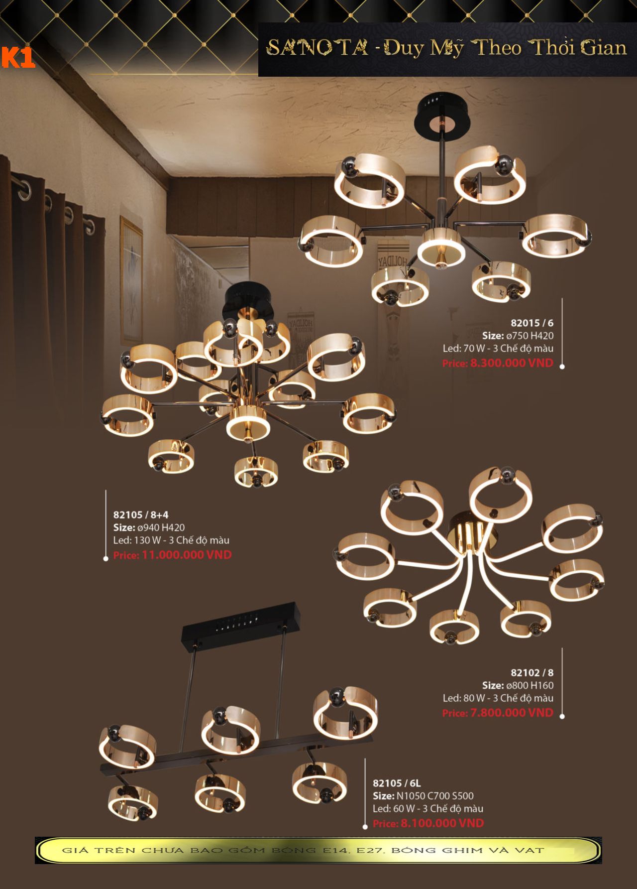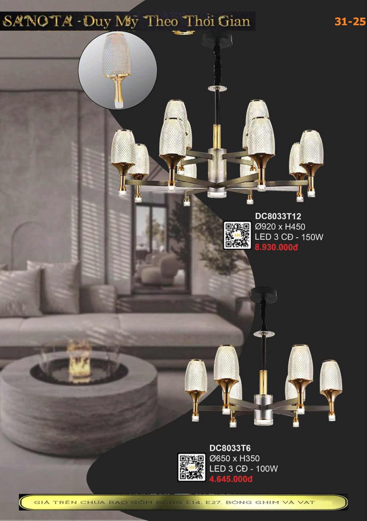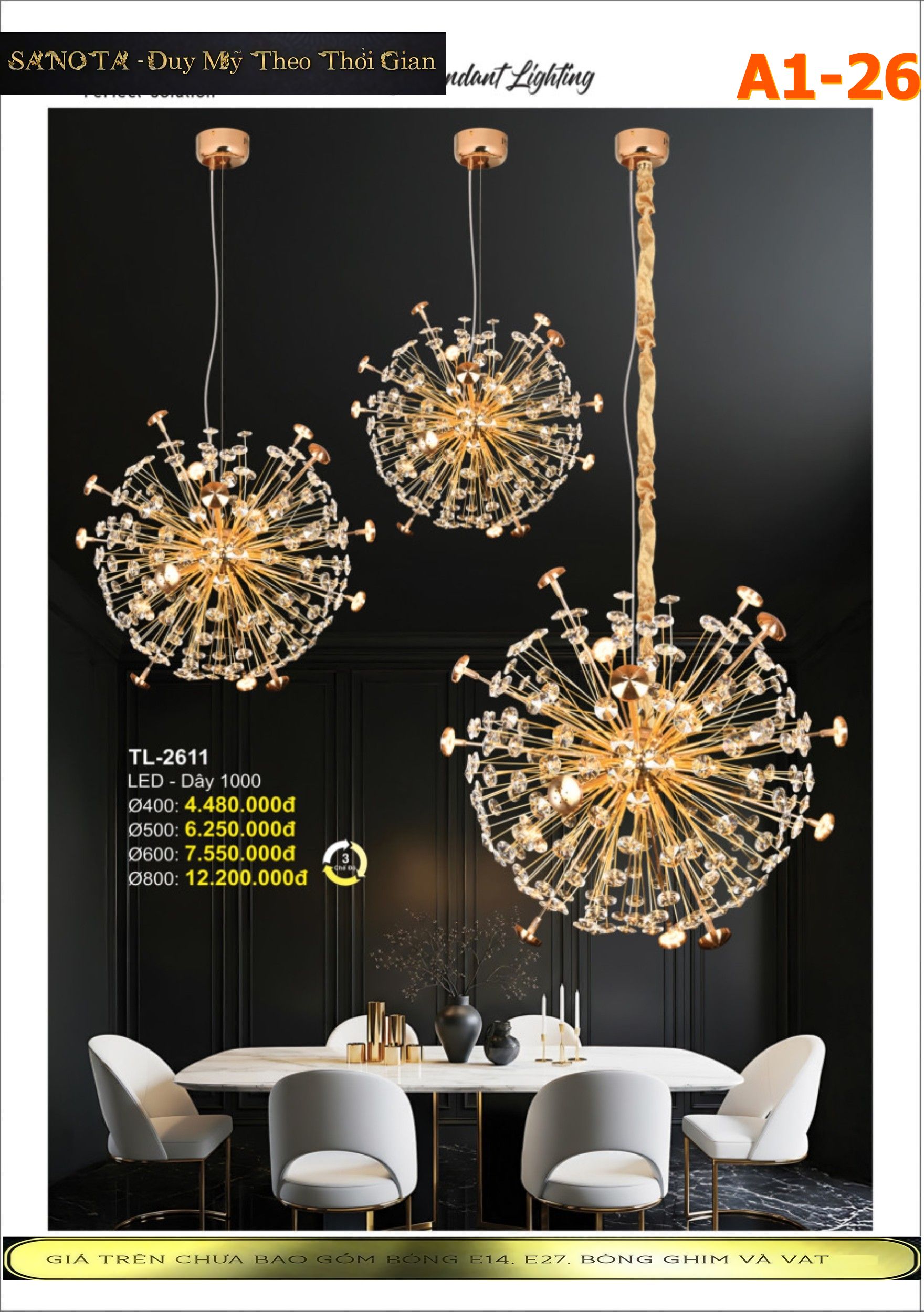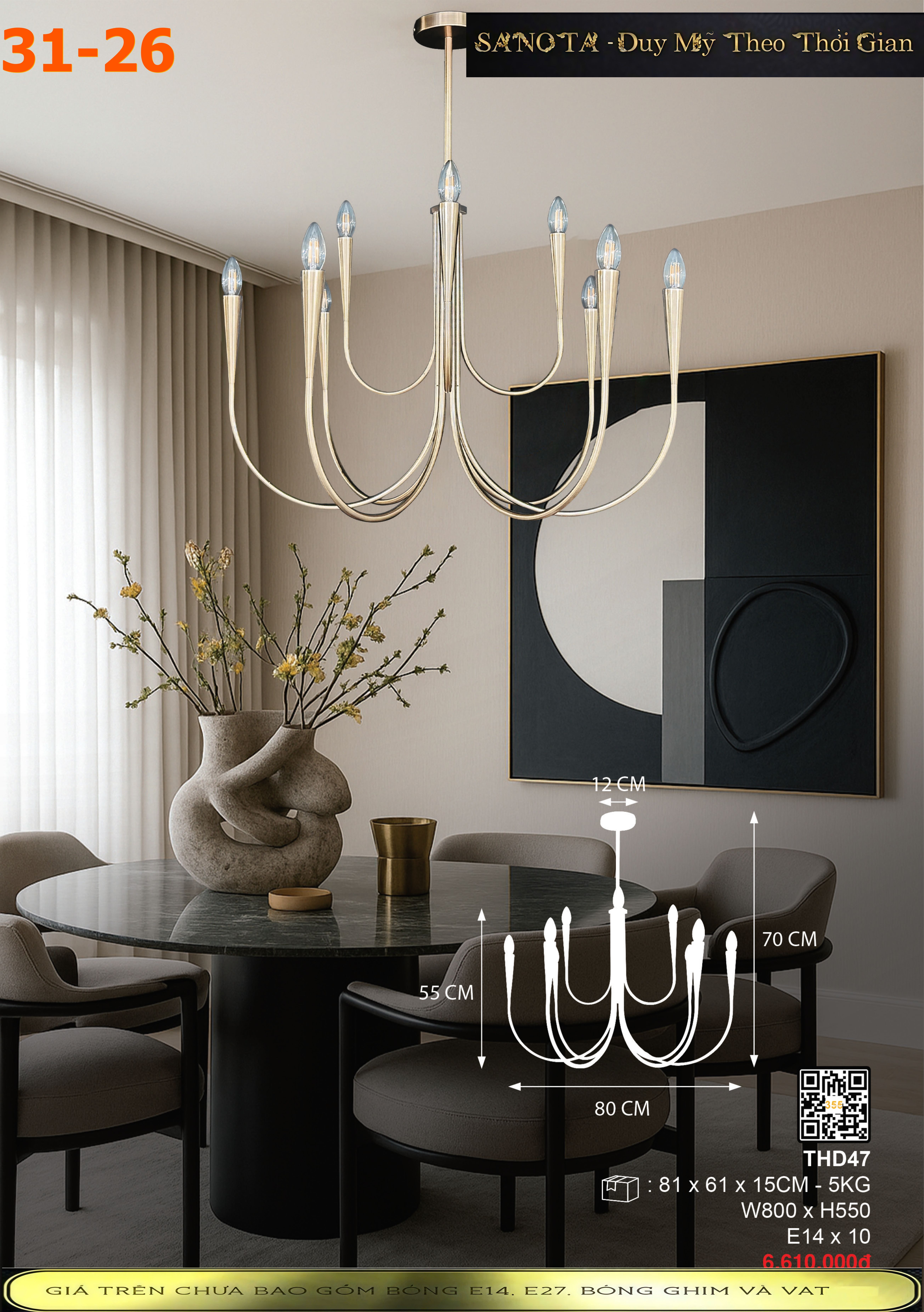 Đèn chùm hiện đại là loại đèn trang trí cao cấp với thiết kế sáng tạo và tinh tế, mang đến vẻ đẹp sang trọng và phong cách cho không gian nội thất. Khác với đèn chùm cổ điển có thiết kế cầu kỳ, phức tạp, đèn chùm hiện đại tập trung vào các đường nét tối giản, hình khối độc đáo và sử dụng chất liệu mới mẻ để tạo nên một phong cách vừa thanh lịch vừa thời thượng.