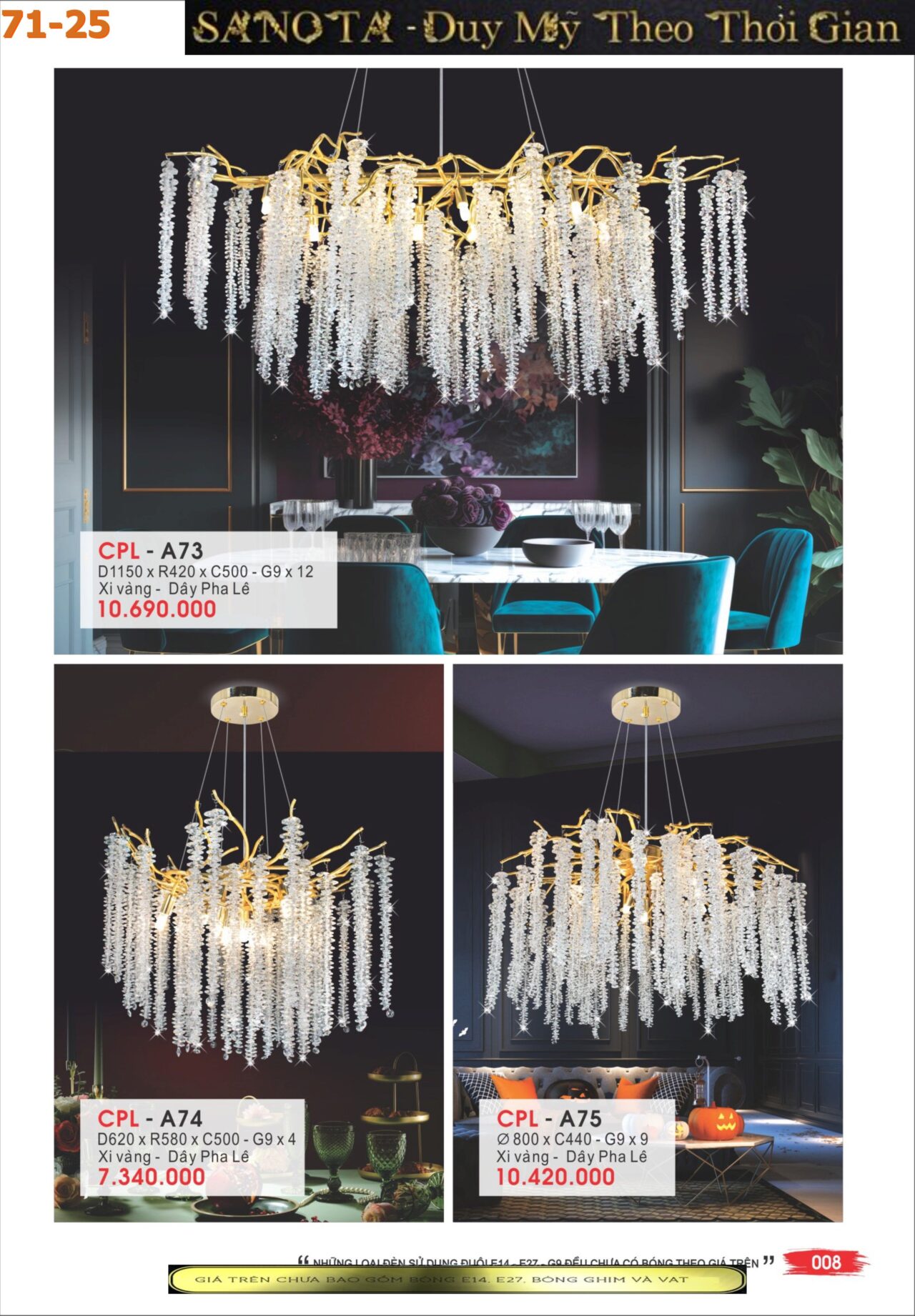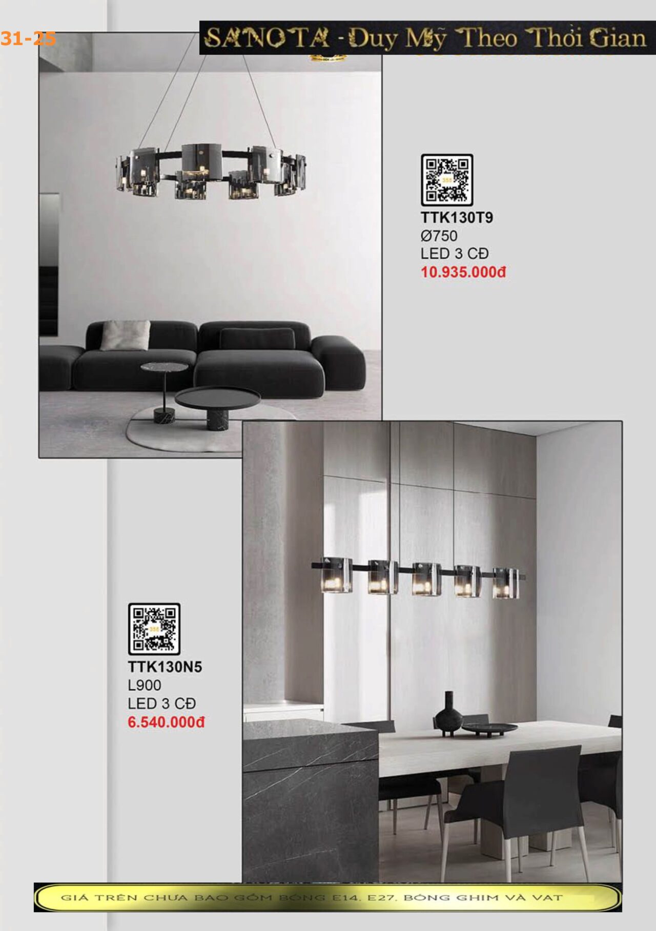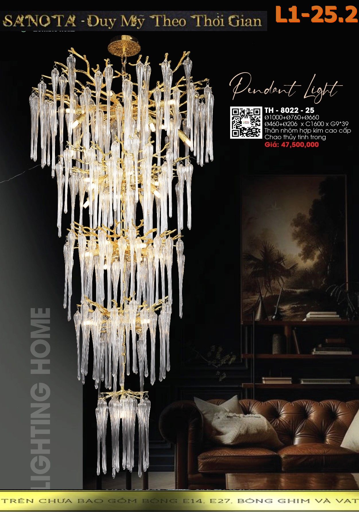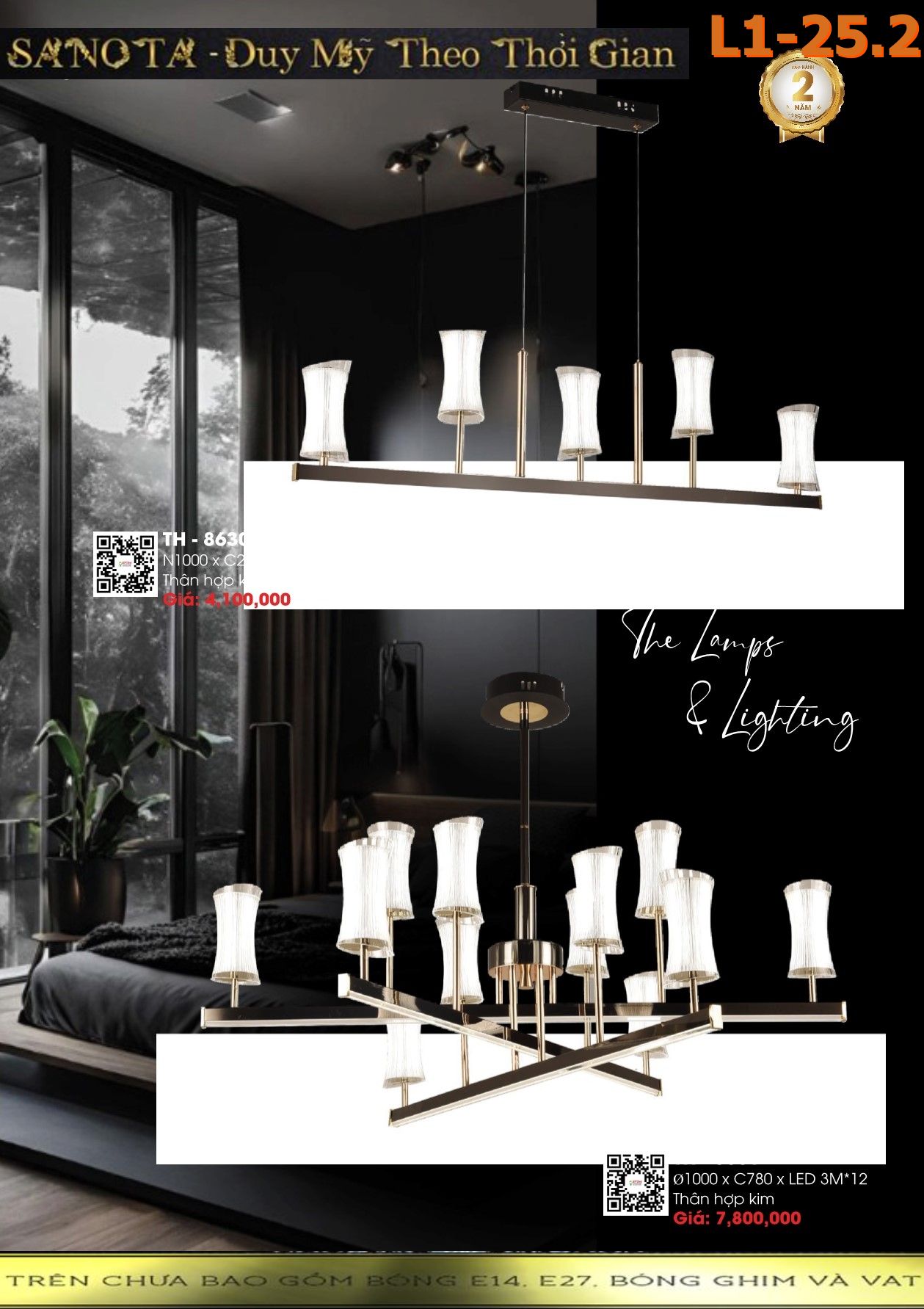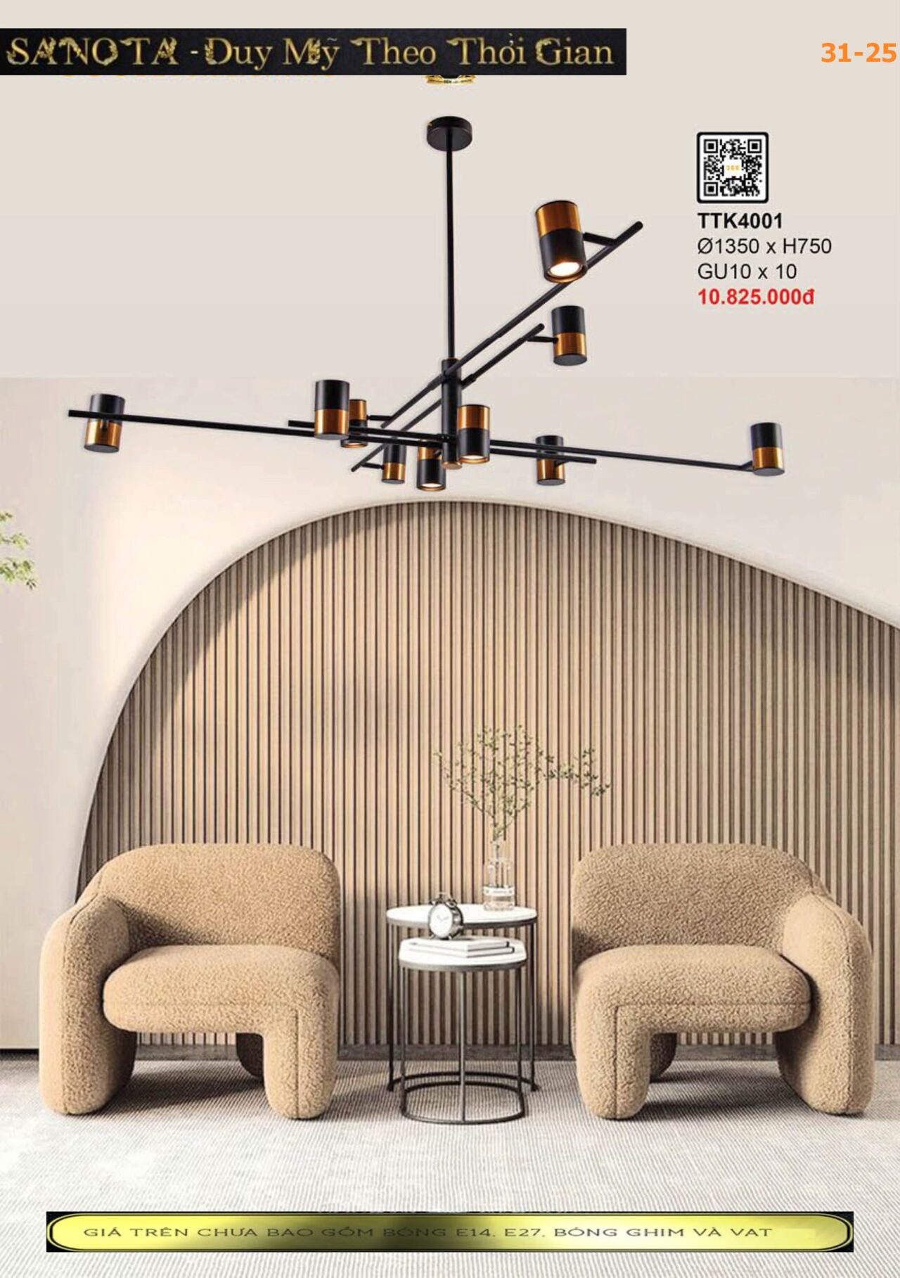 Đèn chùm hiện đại là loại đèn trang trí cao cấp với thiết kế sáng tạo và tinh tế, mang đến vẻ đẹp sang trọng và phong cách cho không gian nội thất. Khác với đèn chùm cổ điển có thiết kế cầu kỳ, phức tạp, đèn chùm hiện đại tập trung vào các đường nét tối giản, hình khối độc đáo và sử dụng chất liệu mới mẻ để tạo nên một phong cách vừa thanh lịch vừa thời thượng.