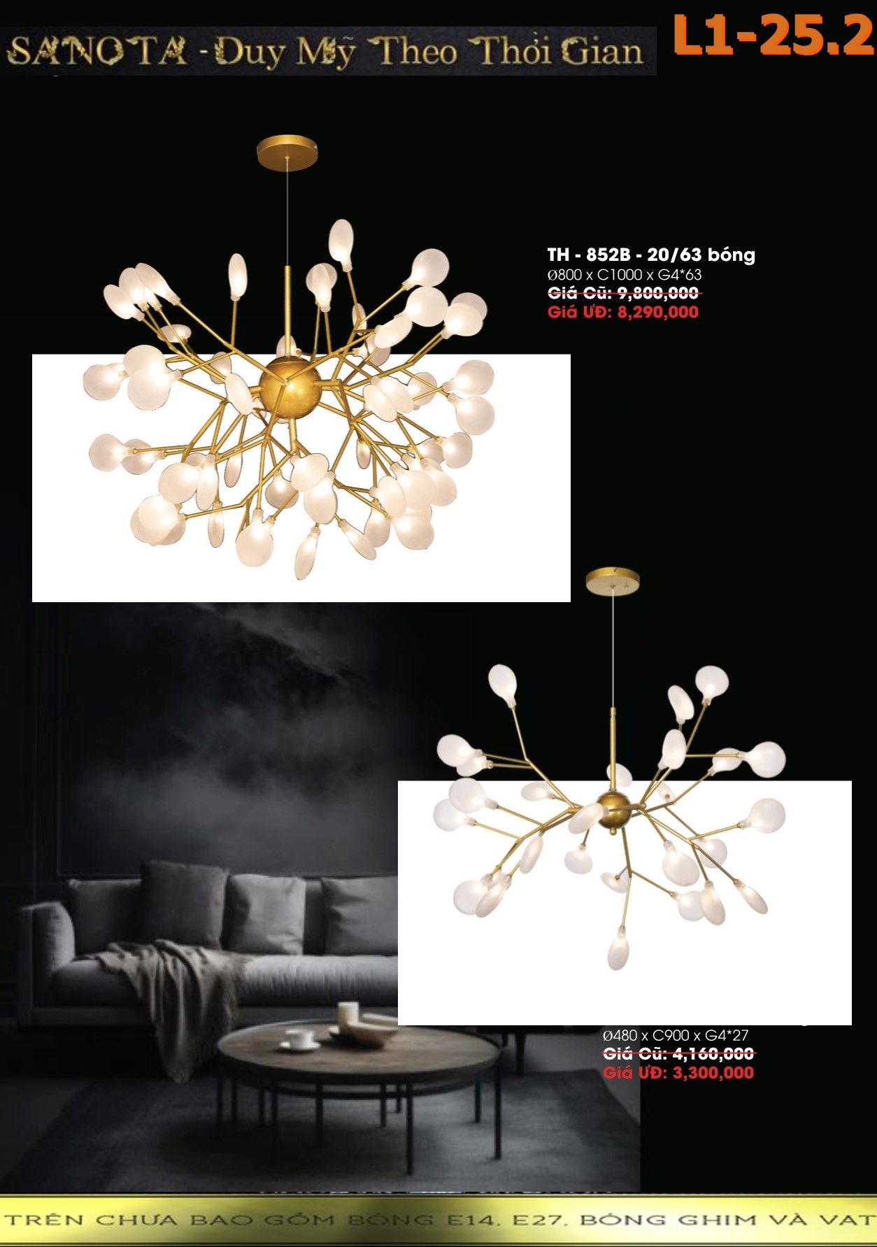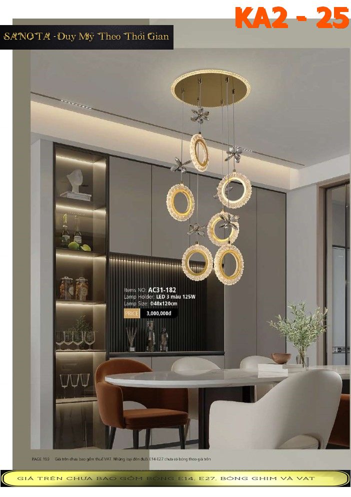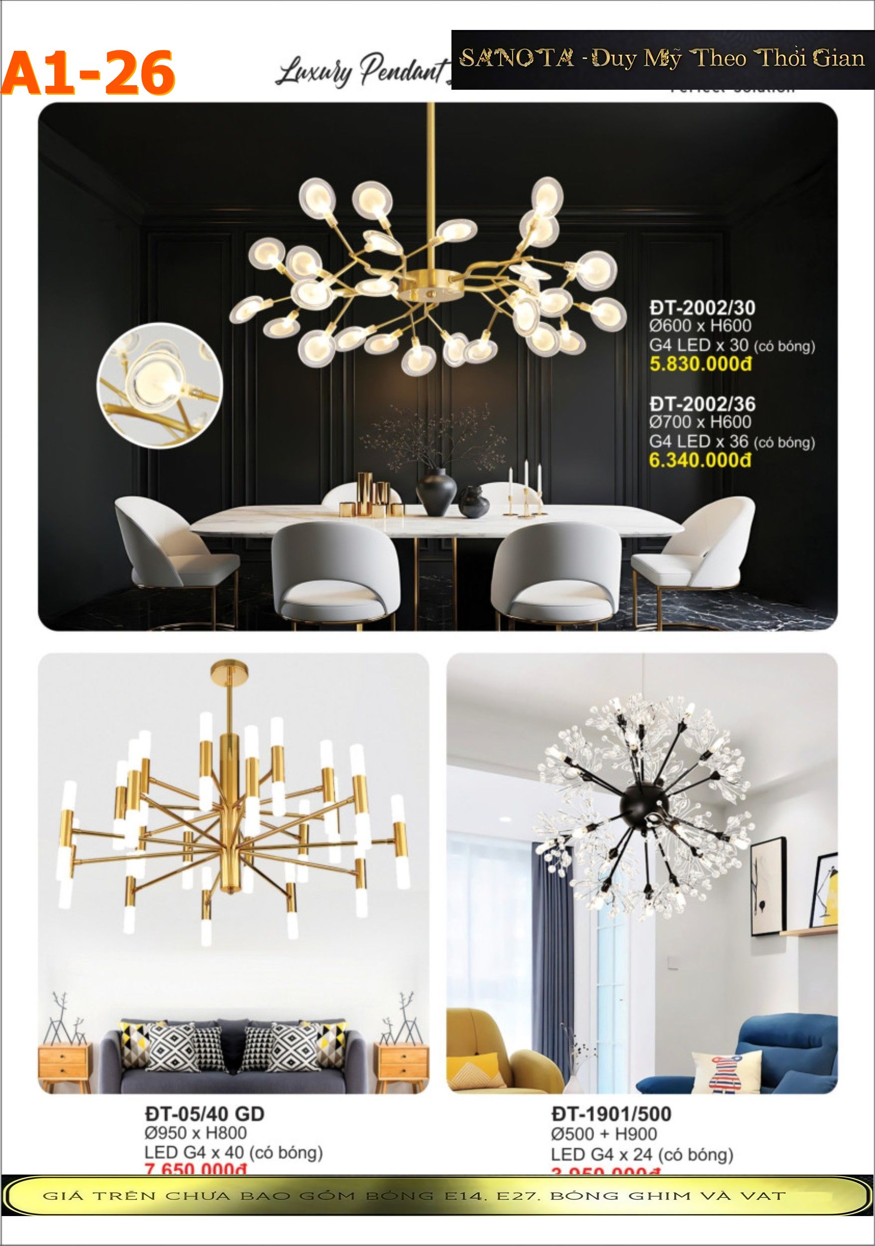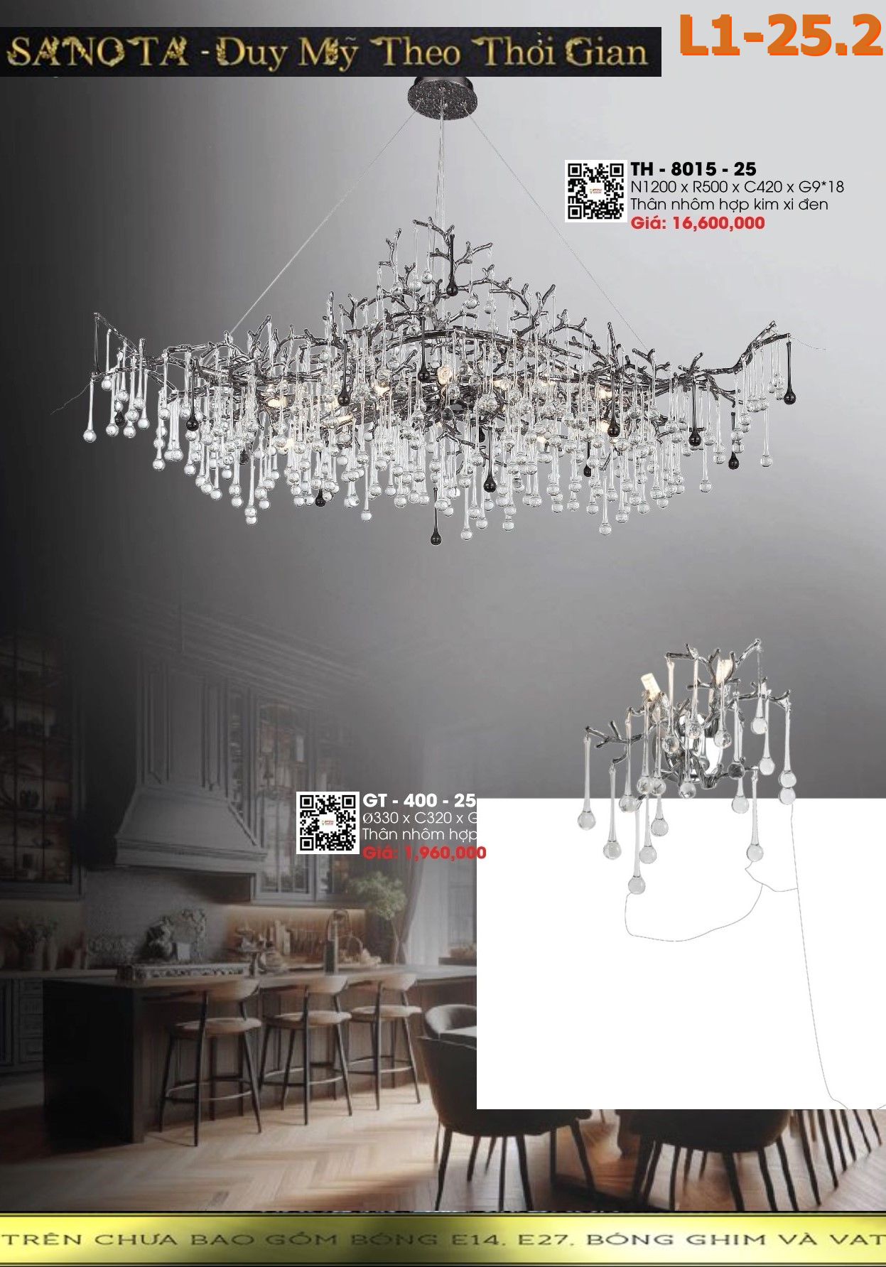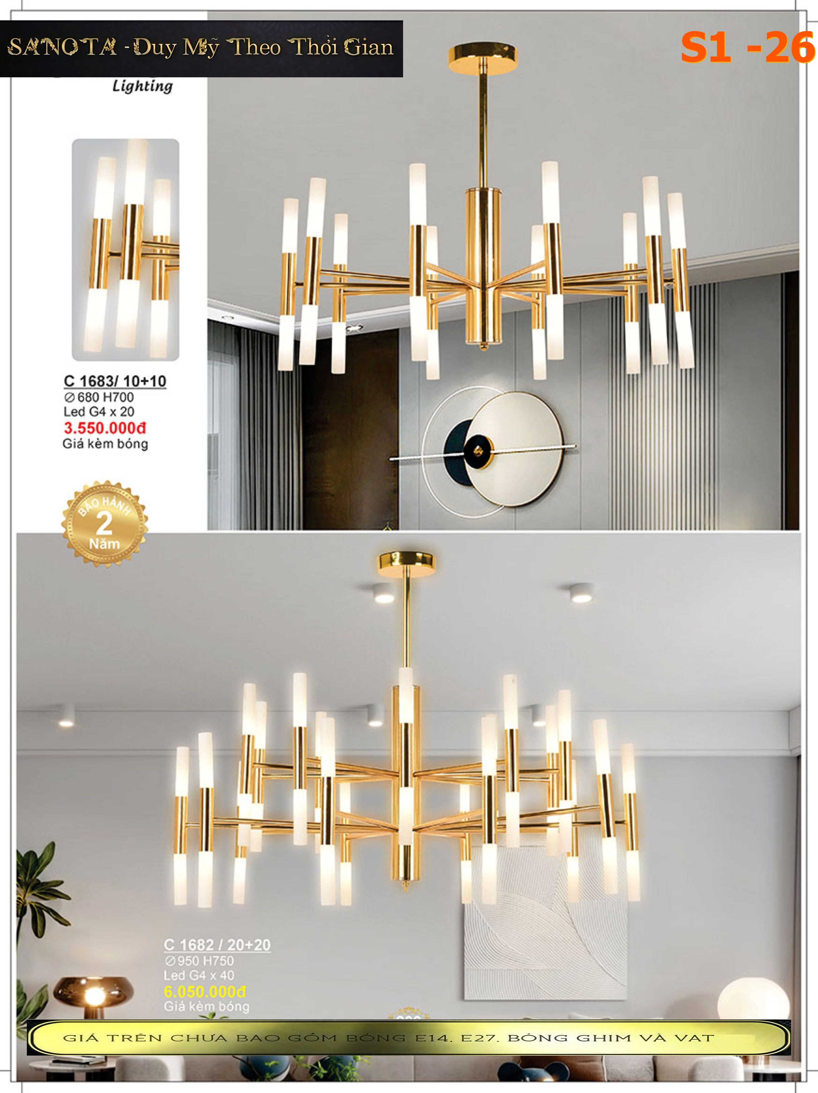 Đèn chùm hiện đại là loại đèn trang trí cao cấp với thiết kế sáng tạo và tinh tế, mang đến vẻ đẹp sang trọng và phong cách cho không gian nội thất. Khác với đèn chùm cổ điển có thiết kế cầu kỳ, phức tạp, đèn chùm hiện đại tập trung vào các đường nét tối giản, hình khối độc đáo và sử dụng chất liệu mới mẻ để tạo nên một phong cách vừa thanh lịch vừa thời thượng.