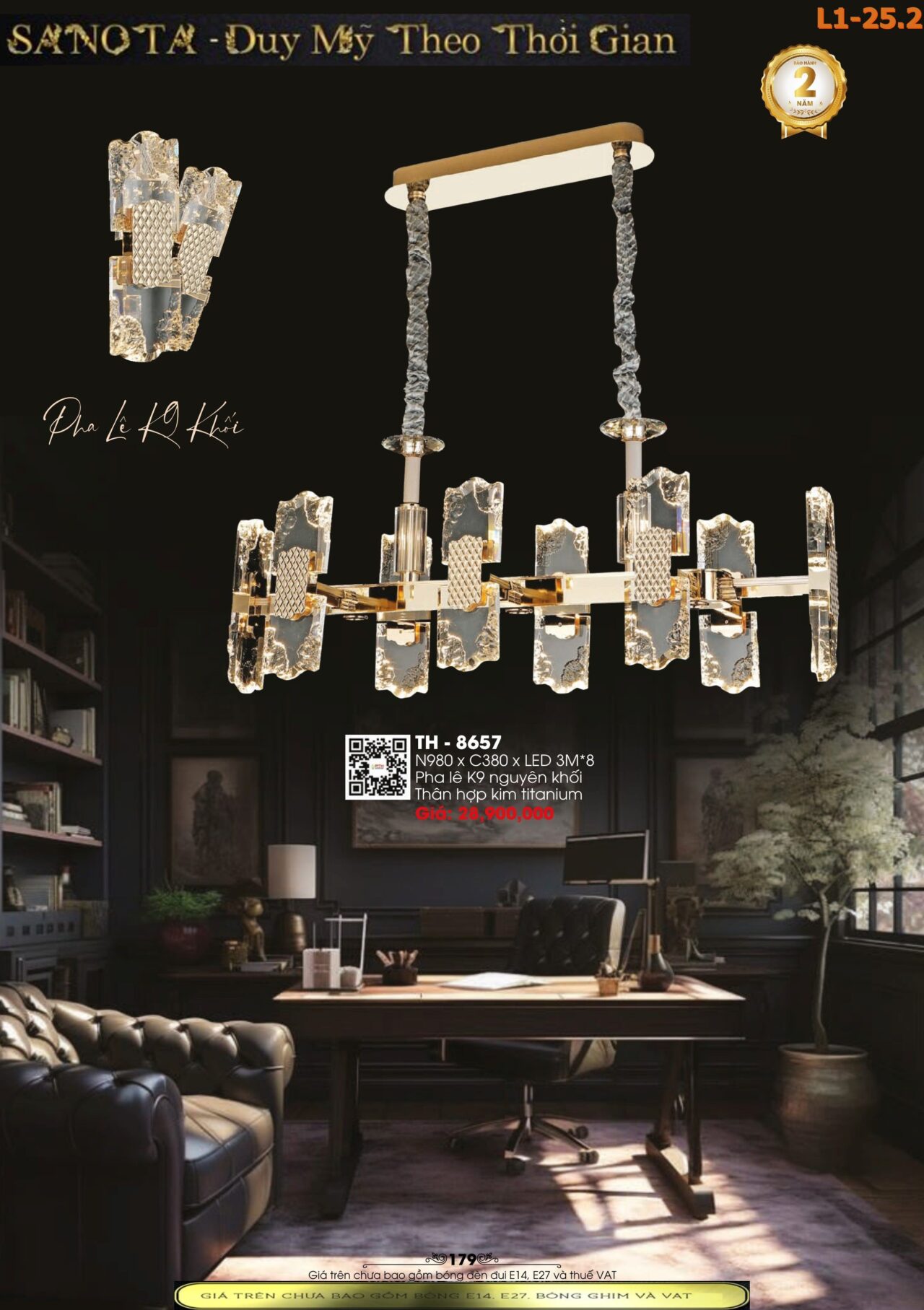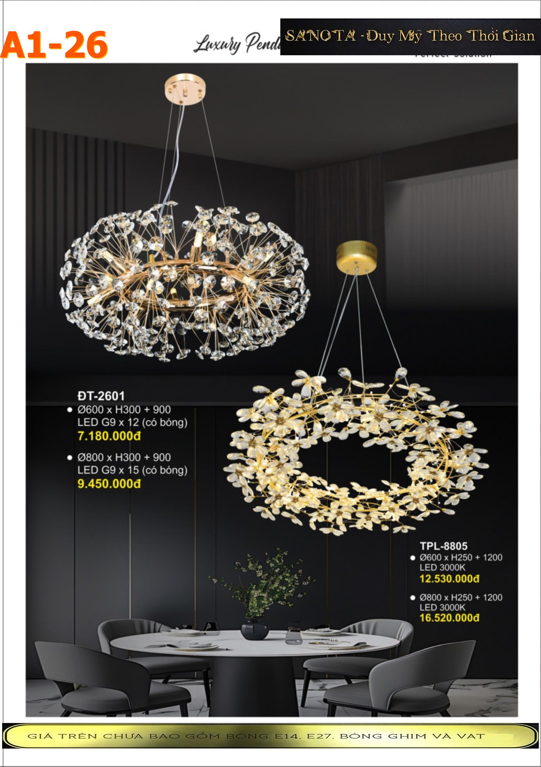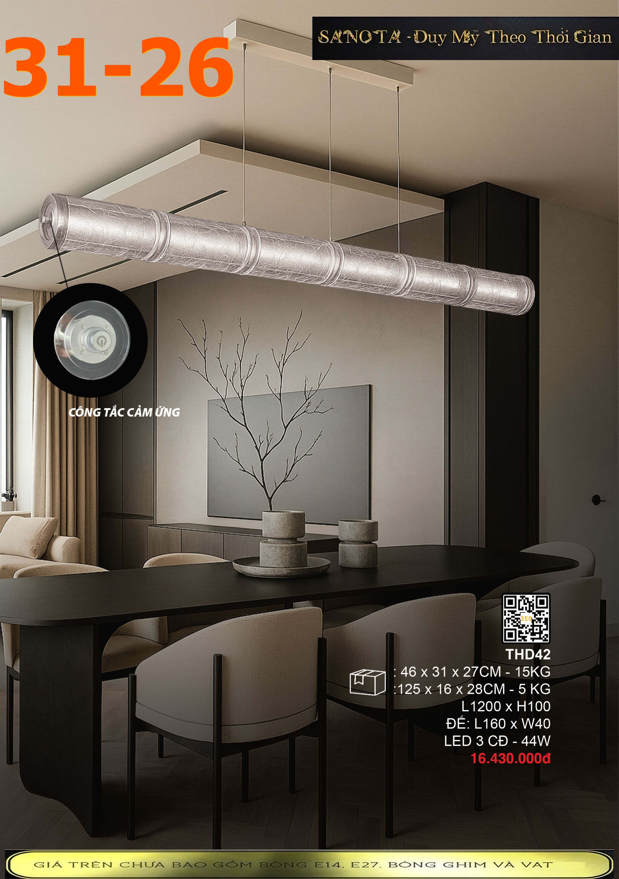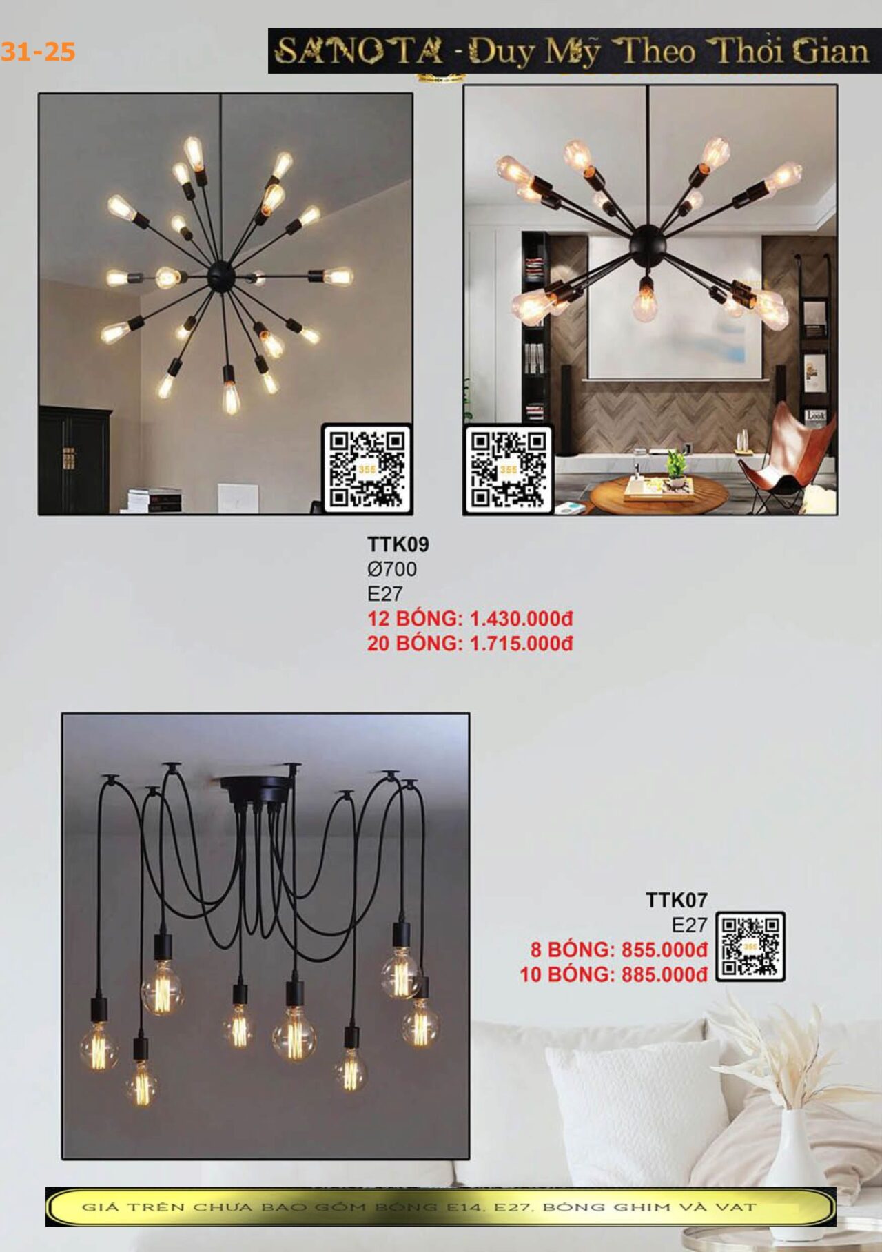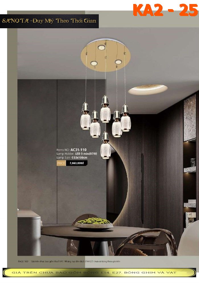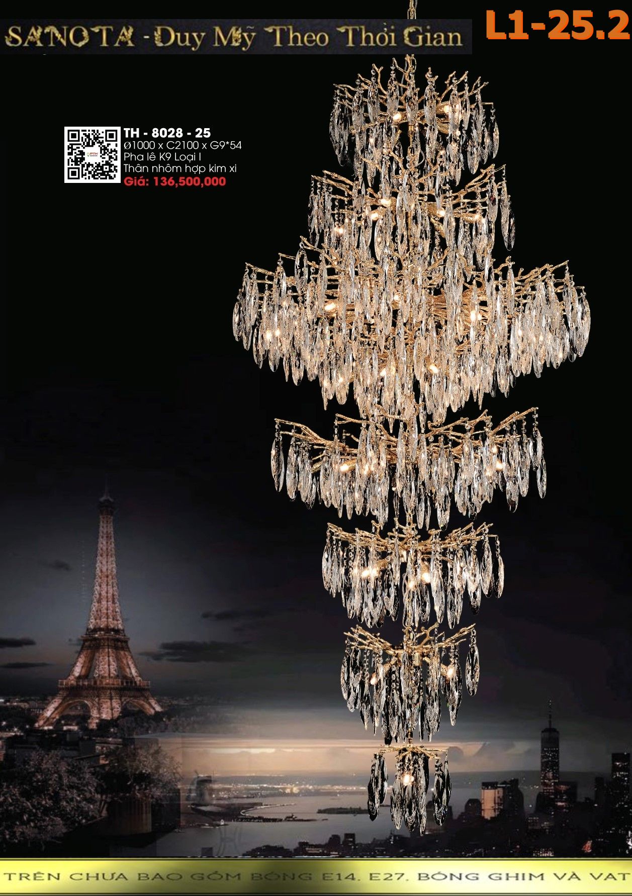 Đèn chùm hiện đại là loại đèn trang trí cao cấp với thiết kế sáng tạo và tinh tế, mang đến vẻ đẹp sang trọng và phong cách cho không gian nội thất. Khác với đèn chùm cổ điển có thiết kế cầu kỳ, phức tạp, đèn chùm hiện đại tập trung vào các đường nét tối giản, hình khối độc đáo và sử dụng chất liệu mới mẻ để tạo nên một phong cách vừa thanh lịch vừa thời thượng.