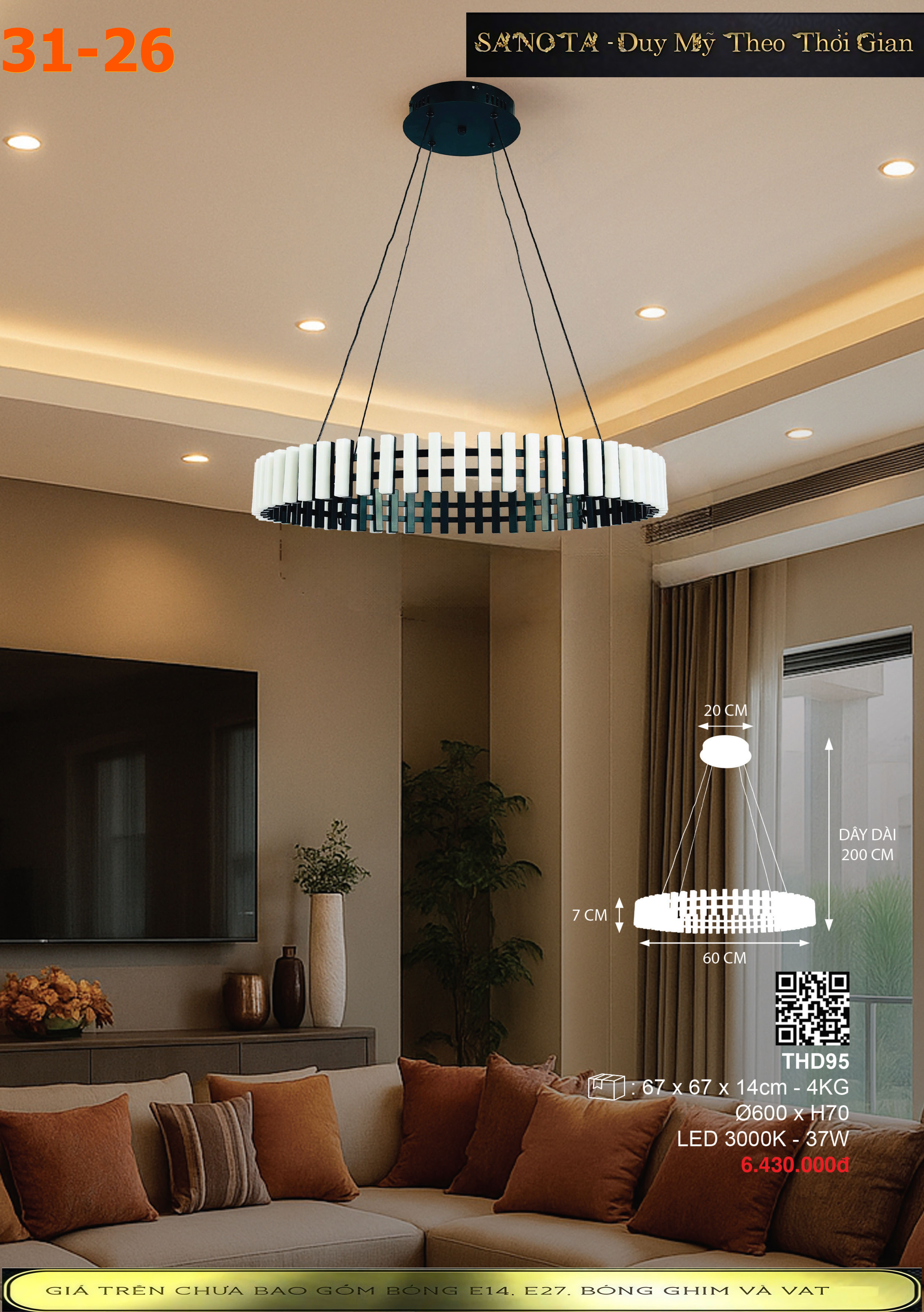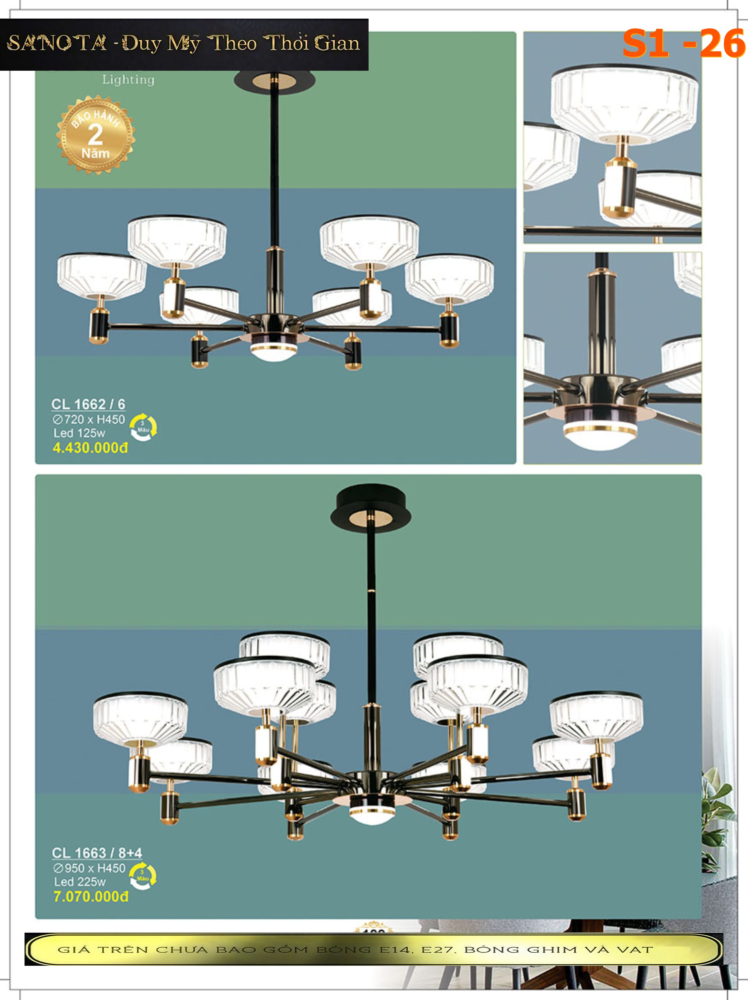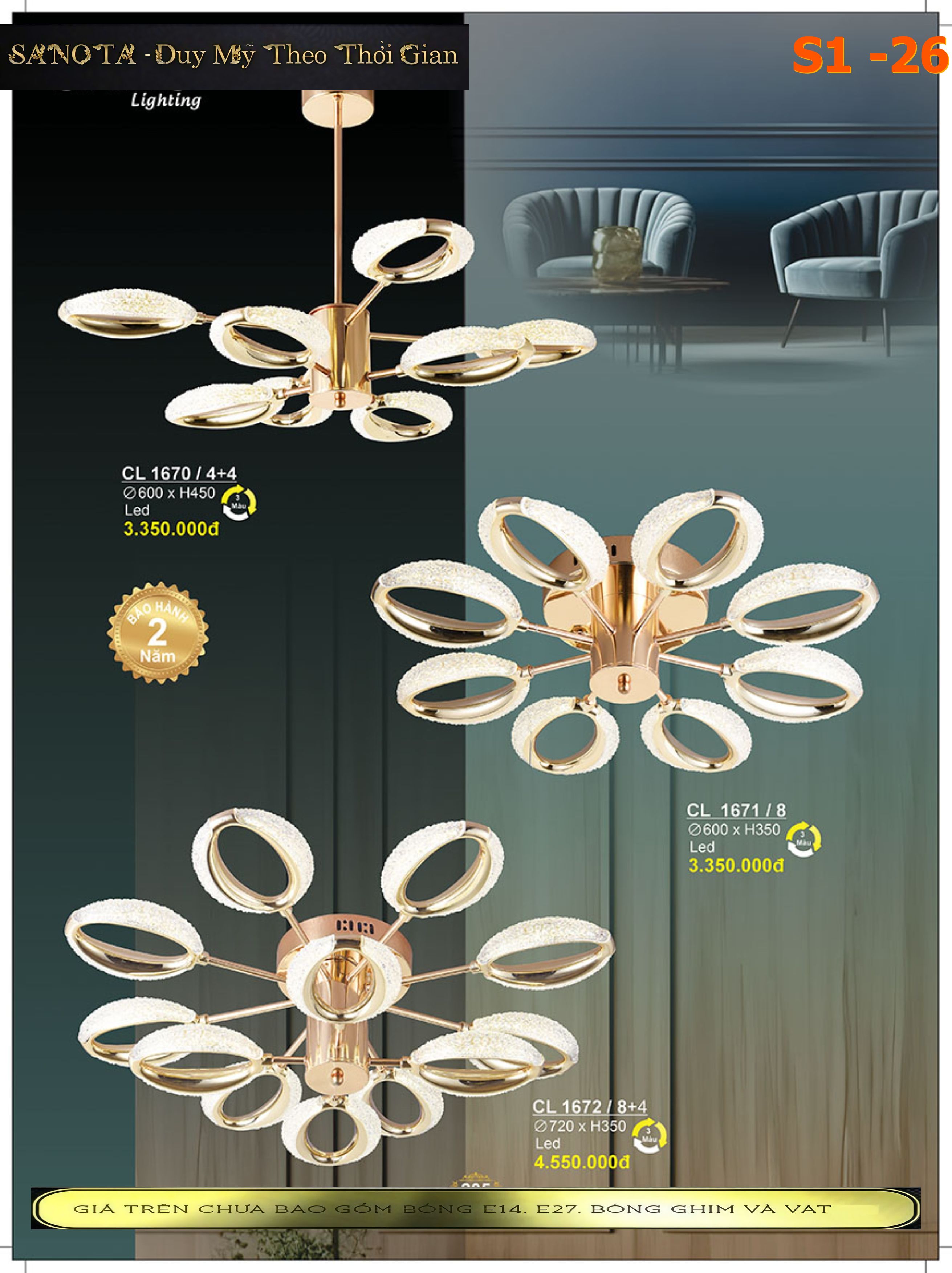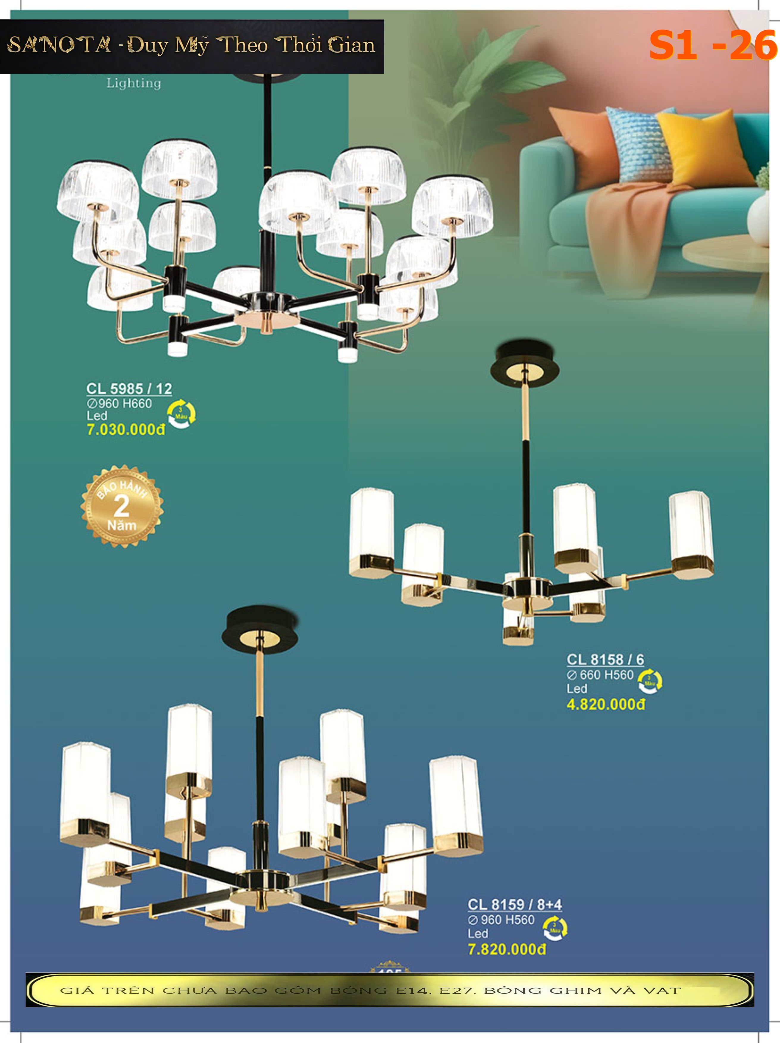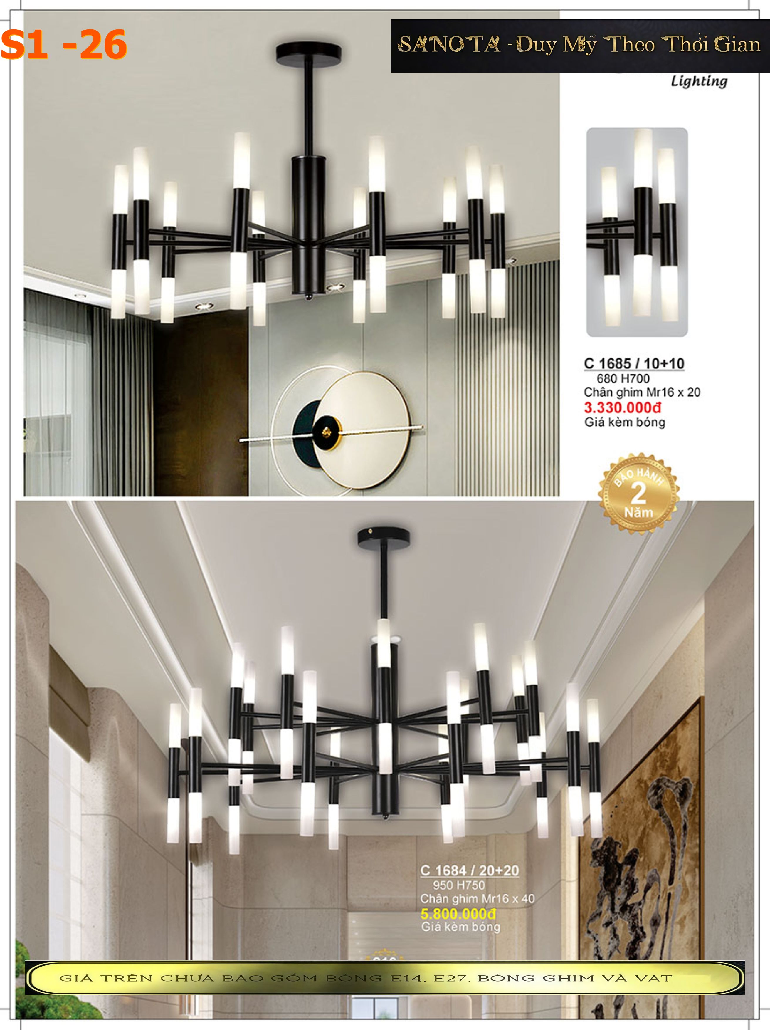 Đèn chùm hiện đại là loại đèn trang trí cao cấp với thiết kế sáng tạo và tinh tế, mang đến vẻ đẹp sang trọng và phong cách cho không gian nội thất. Khác với đèn chùm cổ điển có thiết kế cầu kỳ, phức tạp, đèn chùm hiện đại tập trung vào các đường nét tối giản, hình khối độc đáo và sử dụng chất liệu mới mẻ để tạo nên một phong cách vừa thanh lịch vừa thời thượng.