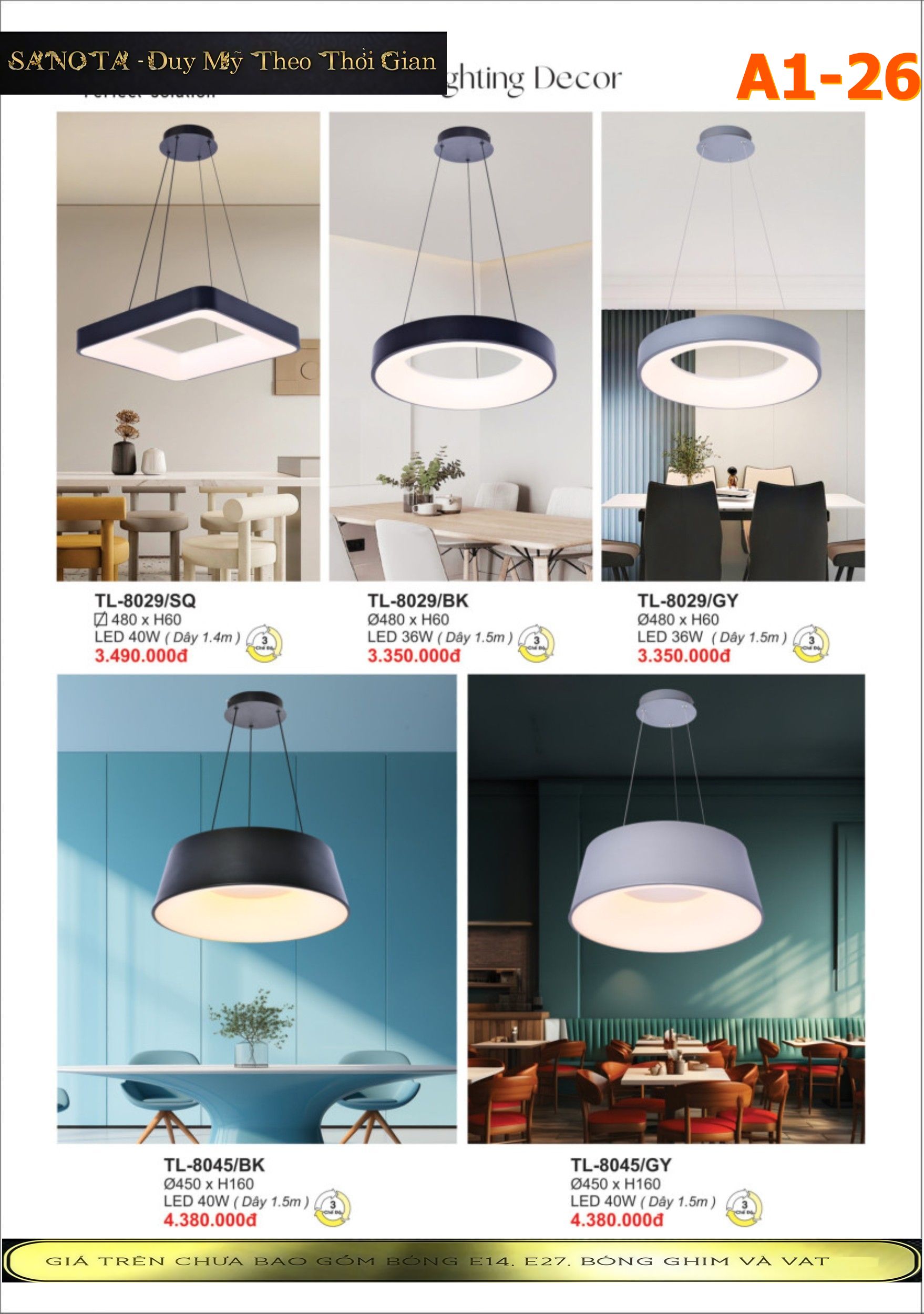 Các mẫu đèn thường có kiểu dáng gọn nhẹ với sự kết hợp giữa các hình học như đường thẳng, vòng tròn, xoắn ốc hoặc khối không đối xứng.