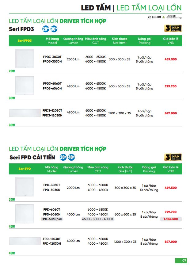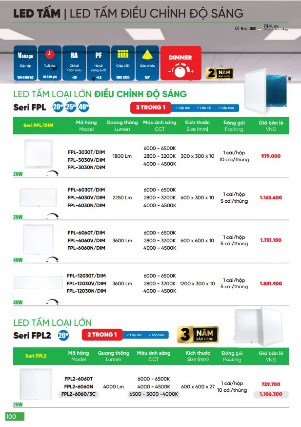 Catalogue đèn panel