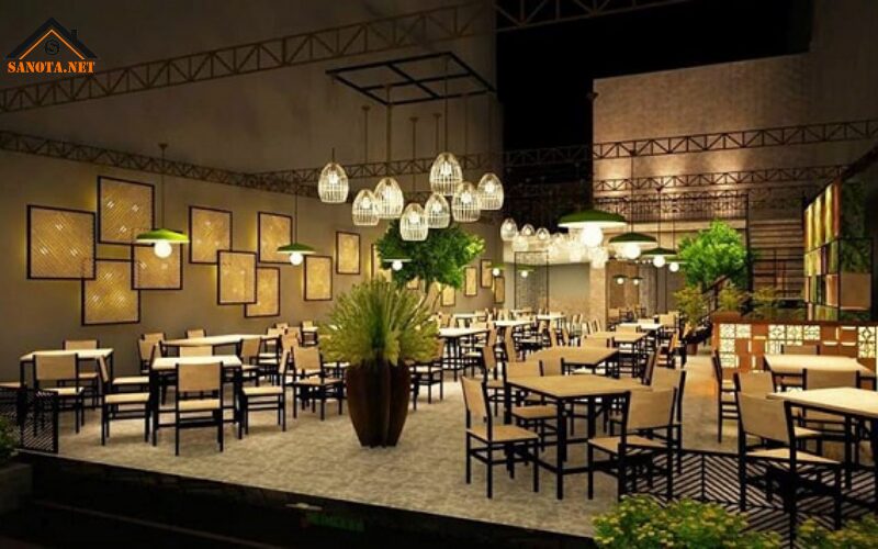 • Nếu bạn có một mặt bằng rộng lớn. Hãy chia khu vực trong quán thành nhiều không gian với phong cách khác nhau để phục vụ đa dạng đối tượng khách hàng. Điều này cũng làm cho việc chọn đèn trang trí trở nên đơn giản hơn.