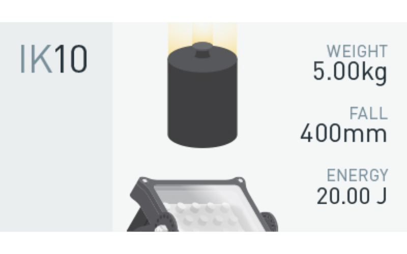 Cụ thể, thiết bị đạt tiêu chuẩn IK10 có thể chịu được va đập với năng lượng 20 joule. Tương đương với lực rơi tự do của một vật nặng 5 kg từ độ cao 40 cm. Đây là mức độ bảo vệ tối ưu, đảm bảo thiết bị không bị hư hỏng hoặc mất chức năng trong các điều kiện tác động cơ học mạnh.