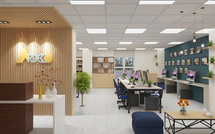 Không gian văn phòng thường rộng và cao. Vì vậy cách lựa chọn đèn âm trần là bạn nên lựa chọn các dòng đèn có độ chiếu rọi tốt và công suất cao hơn.