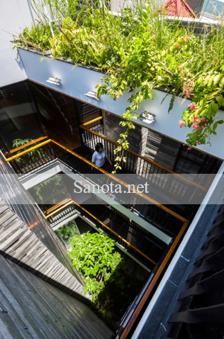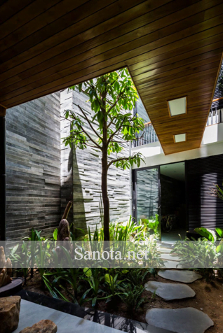 Cây xanh sẽ trở thành điểm nhấn cho mẫu thiết kê nhà phố này. Không chỉ bên ngoài, mà ngay cả ở bên trong. Trong mẫu thiết kế nhà có nhiều cây xanh này, bạn có thể nhìn thấy cây xanh ở bất kỳ đâu. Điều bạn thấy ở ngôi nhà này là chúng không khác gì một vườn nhiệt đới. Các loại cây lựa chọn một cách cẩn thẩn để phù hợp với điều kiện khí hậu tại Việt Nam.