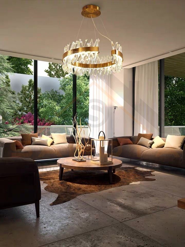 Nhắc đến đèn trang trí phòng khách mà bỏ qua đèn chùm thì quả là một thiếu sót lớn, đây là loại đèn trang trí phổ biến nhất và được nhiều gia đình lựa chọn sử dụng nhất. Đèn chùm thường sử dụng chất liệu thủy tinh hoặc pha lê lấp lánh, phổ biến nhất cho những người yêu thích sự hoài cổ, rất thích hợp với không gian phòng khách rộng.