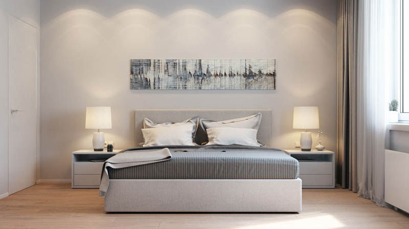 Nếu phòng khách cần nhiều ánh sáng để sử dụng cho việc sinh hoạt chung của gia đình thì phòng ngủ là nơi riêng tư nên cần ánh sáng hài hòa, không quá sáng cũng không quá tối. Ánh sáng trong phòng ngủ quá mạnh sẽ khiến người ta nóng, dễ nổi cáu, bức bối trong người. Nhưng ánh sáng không đủ sẽ làm cho căn phòng tối tăm, khiến tinh thần ủ rũ, suy tư,…