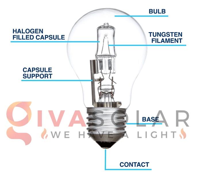 So với bóng đèn sợi đốt, bóng đèn này sáng hơn khoảng 10 % trở lên, ánh sáng đỡ vàng hơn nhưng lại toả nhiều nhiệt, nóng hơn và không tiết kiệm điện. Tuy nhiên, ưu điểm của nó là ánh sáng liên tục không gây nhấp nháy và màu sắc của đồ vật được chiếu sáng trông thật màu nhất. Nhưng trên thị trường hiện nay, phần lớn đèn bàn này sử dụng bóng đèn Halogen chất lượng kém, tuổi thọ thấp, không có nhiều bóng đèn thay thế. Nếu muốn dùng loại bóng Halogen này nên chọn hãng sản xuất bóng đèn lớn có tên tuổi để đảm bảo chất lượng.