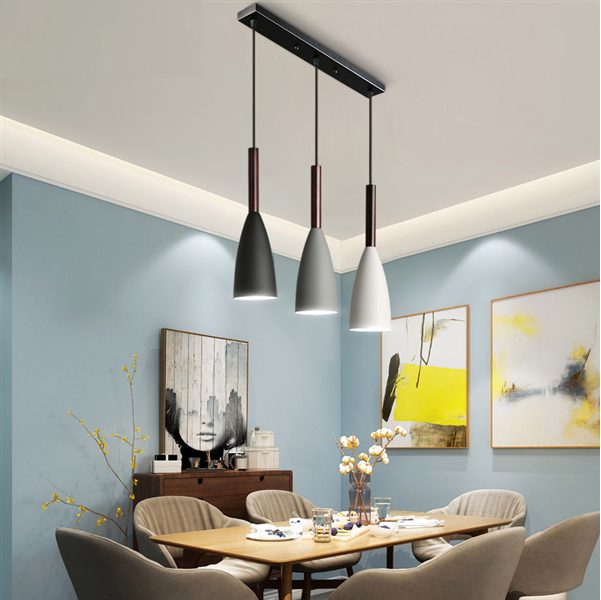 Không chỉ là sự kết hợp của 1 bóng đơn thuần, đèn thả bàn ăn 3 bóng giá rẻ là một sự kết hợp tổng thể của 3 bóng đèn. Khách hàng có thể cảm nhận được những nét phá cách trong hỗn hợp màu sắc nổi bật khiến không gian trở lên tinh tế. Ngoài ra, bộ ba bóng đèn trang trí bàn ăn sẽ giúp không gian nhà bếp trở lên đẳng cấp, thời thượng .