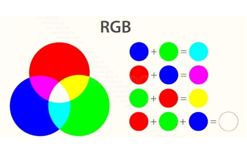 Hệ màu RGB hoạt động dựa trên nguyên lý bổ sung ánh sáng. Bằng cách pha trộn ba màu cơ bản theo các tỷ lệ khác nhau, RGB tạo ra nhiều màu sắc đa dạng. Phương pháp này đặc biệt phù hợp trên nền đen. Giúp tạo nên hình ảnh sắc nét và chân thực trên màn hình máy tính, điện thoại hay TV.