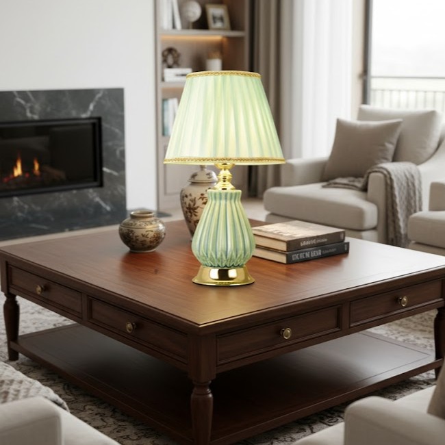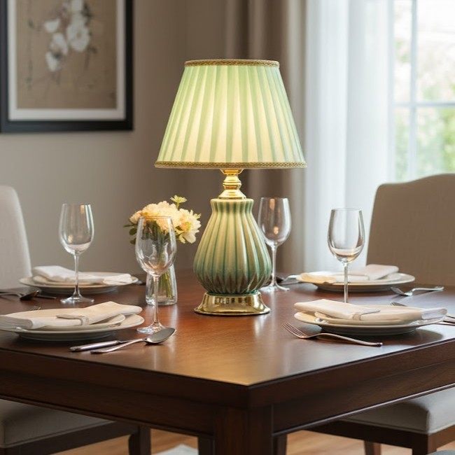 - Thân đèn gốm sứ men lục bảo bóng mịn, sang trọng và bền đẹp.