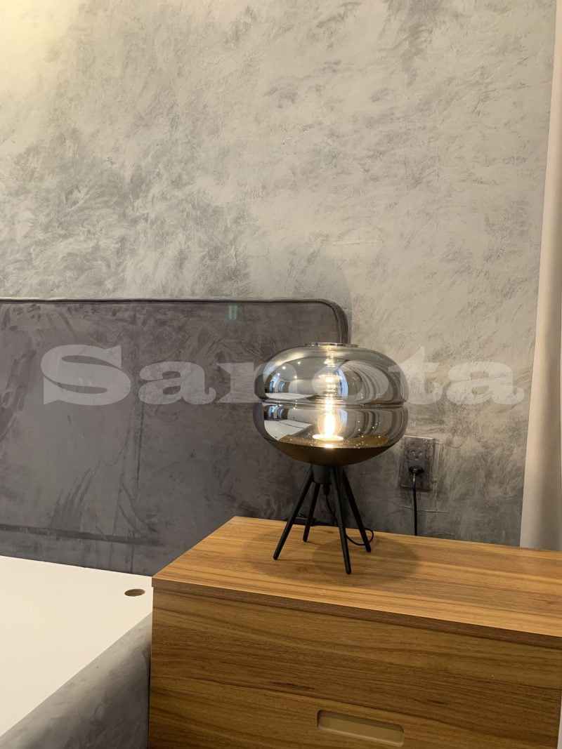 Đèn bàn Alondra thiết kế độc đáo với chất liệu: thân kim loại sơn tĩnh điện + chao thủy tinh