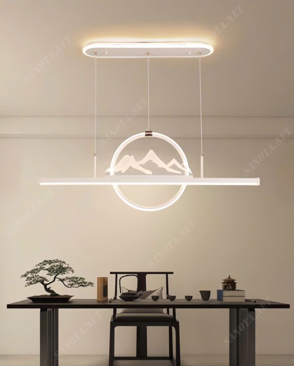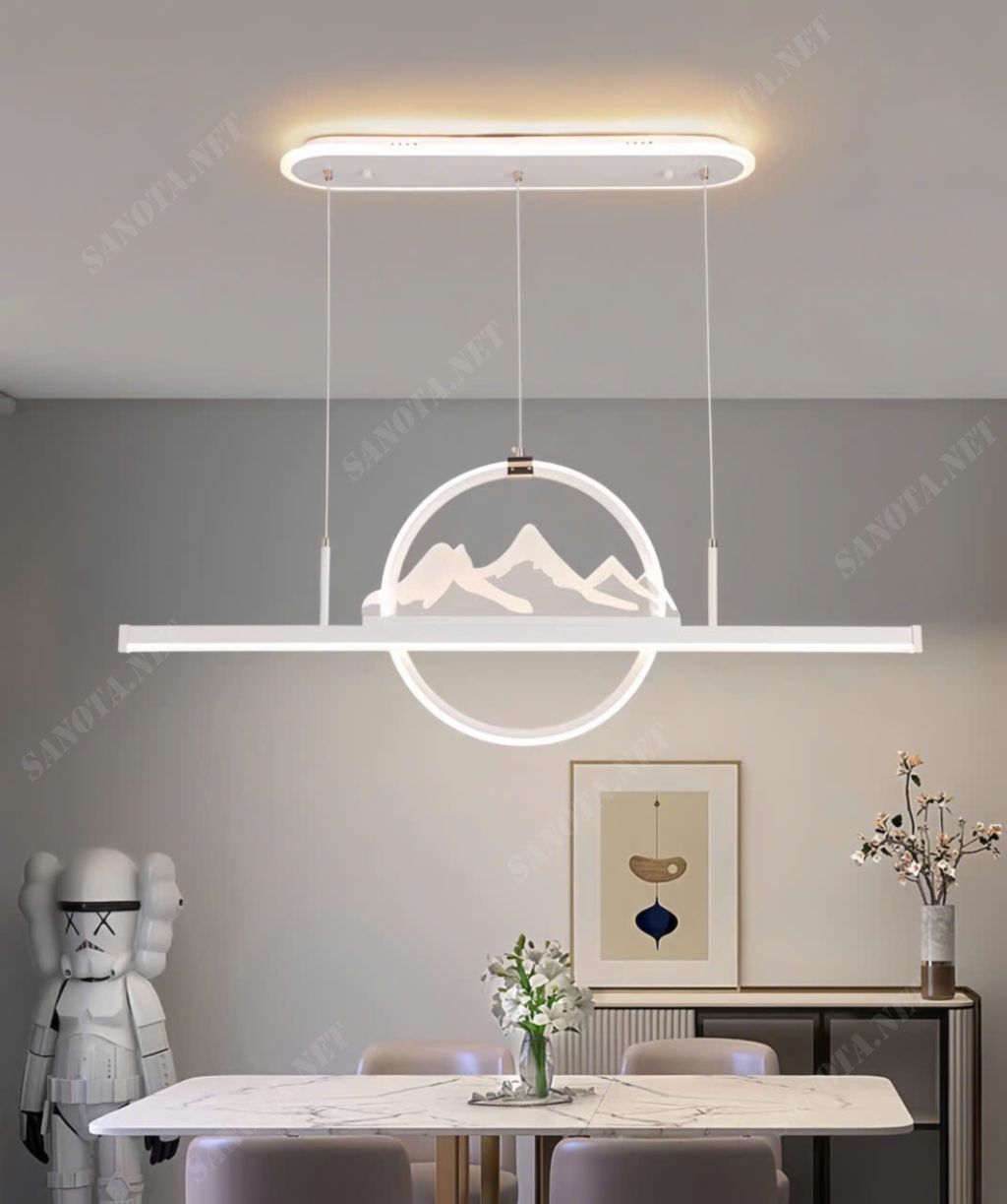 Lấy cảm hứng từ hình ảnh núi non cách điệu trong vòng tròn. Đèn chùm bàn ăn Mountain Glow mang phong cách sơn thủy hiện đại, vừa nhẹ nhàng vừa đầy chất thơ. Kiểu dáng thanh thoát giúp chiếc đèn trở thành điểm nhấn trang trí nổi bật cho khu vực bàn ăn, phòng khách hay không gian tiếp khách.