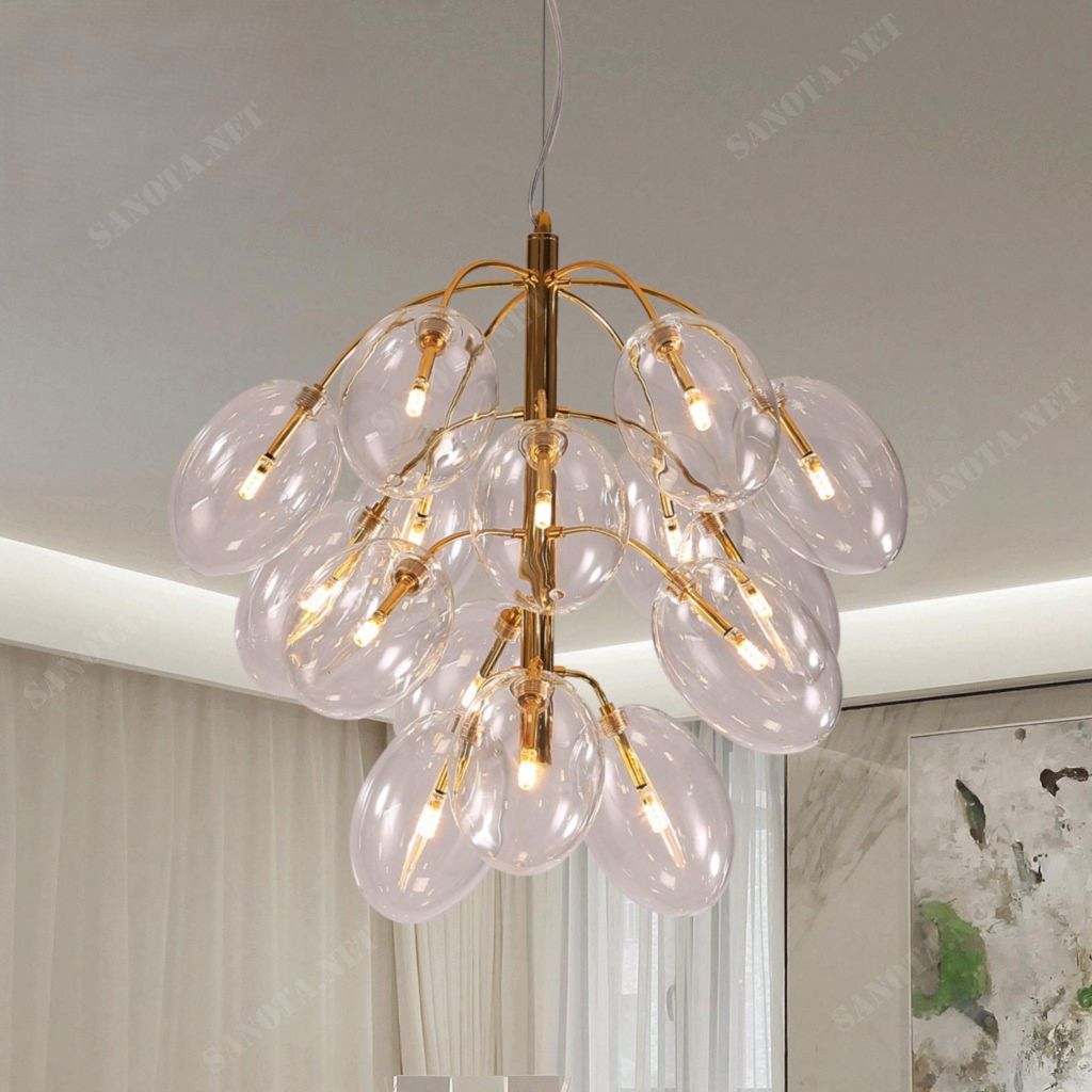 Chiếc đèn chùm chao thủy tinh này thực sự là một tác phẩm nghệ thuật. Hứa hẹn sẽ trở thành tâm điểm của mọi không gian. Với thiết kế độc đáo, đèn kết hợp hài hòa giữa khung kim loại mạ vàng sang trọng và những bóng thủy tinh tròn trong suốt. Mang lại vẻ đẹp hiện đại, tinh tế và cuốn hút.