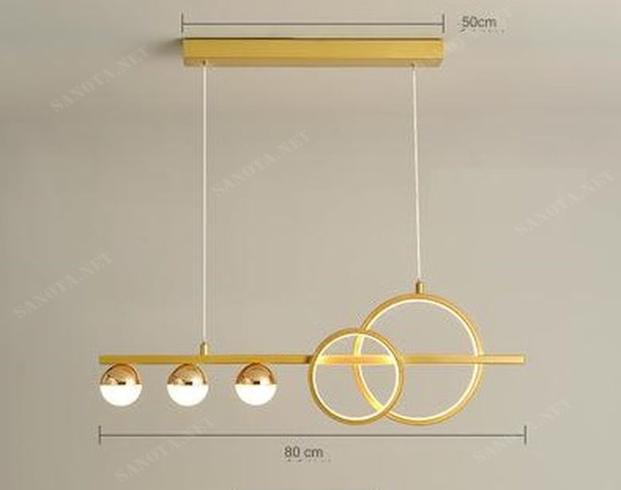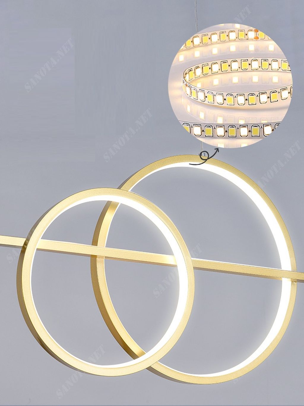 Đèn chùm phong cách hiện đại sở hữu thiết kế thanh lịch, tinh tế với khung đèn được làm từ hợp kim cao cấp. Phủ lớp sơn tĩnh điện màu vàng sang trọng. Điểm nhấn của chiếc đèn này chính là những vòng tròn LED được xếp chồng lên nhau một cách nghệ thuật. Tạo nên hiệu ứng thị giác độc đáo và ấn tượng.