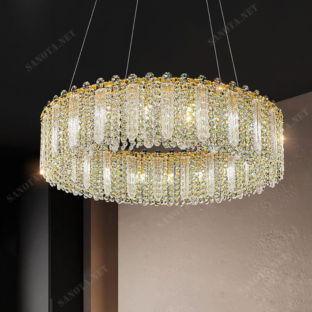 Chiếc đèn chùm pha lê sang trọng này là một tác phẩm nghệ thuật đẳng cấp. Kết hợp giữa vẻ đẹp hiện đại và độ sang trọng độc đáo. Với thiết kế hình vòng tròn, chiếc đèn tạo nên một điểm nhấn lộng lẫy. Làm bật lên vẻ đẹp tinh tế và quý phái.