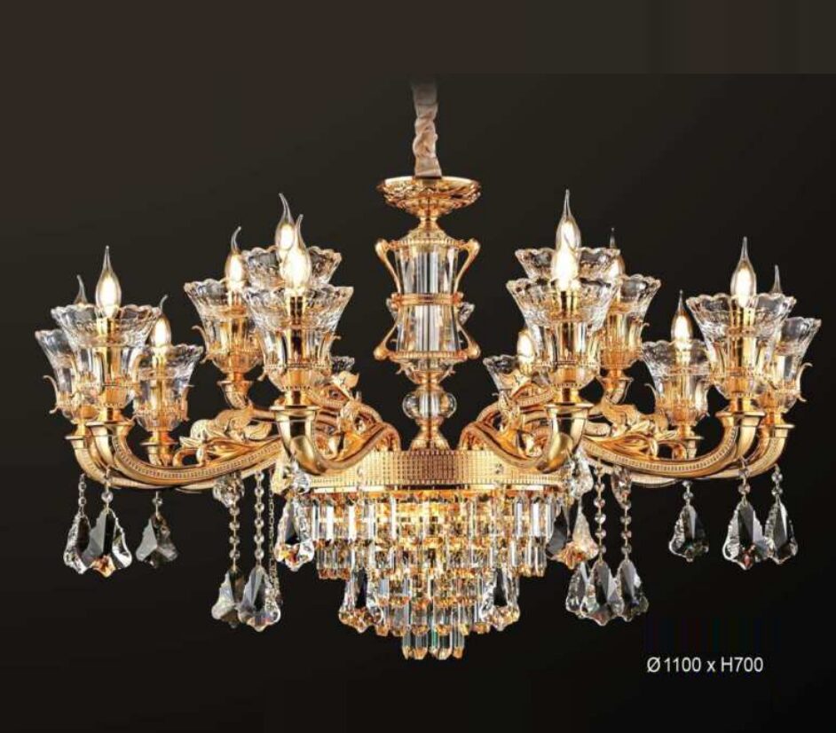 Đèn chùm pha lê cành ô liu vàng kim SNT6240