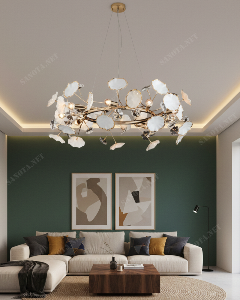 Hệ LED ánh sáng 3000K cho sắc vàng ấm áp, giúp tôn lên vẻ đẹp của từng chi tiết và tạo bầu không khí ấm cúng, sang trọng. Với đường kính lớn và bố cục nhiều tầng lớp. Chiếc đèn không chỉ là nguồn sáng mà còn là điểm nhấn nghệ thuật hoàn hảo cho phòng khách, sảnh lớn hay không gian đón tiếp cao cấp.