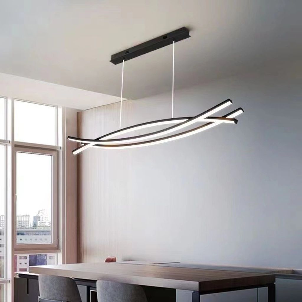 Đèn chùm trang trí lấy cảm hứng từ những đường cong mềm mại kết hợp cùng cấu trúc giao thoa cân xứng. Đèn chùm này nổi bật với hệ khung đèn dạng thanh uốn lượn thanh thoát. Hòa quyện giữa ánh sáng trắng tinh khôi và chất liệu kim loại phủ đen nhám thời thượng. Cấu trúc treo từ trần tối giản giúp đèn trở thành một điểm nhấn thị giác lý tưởng cho phòng ăn, phòng khách hay khu vực tiếp khách sang trọng.