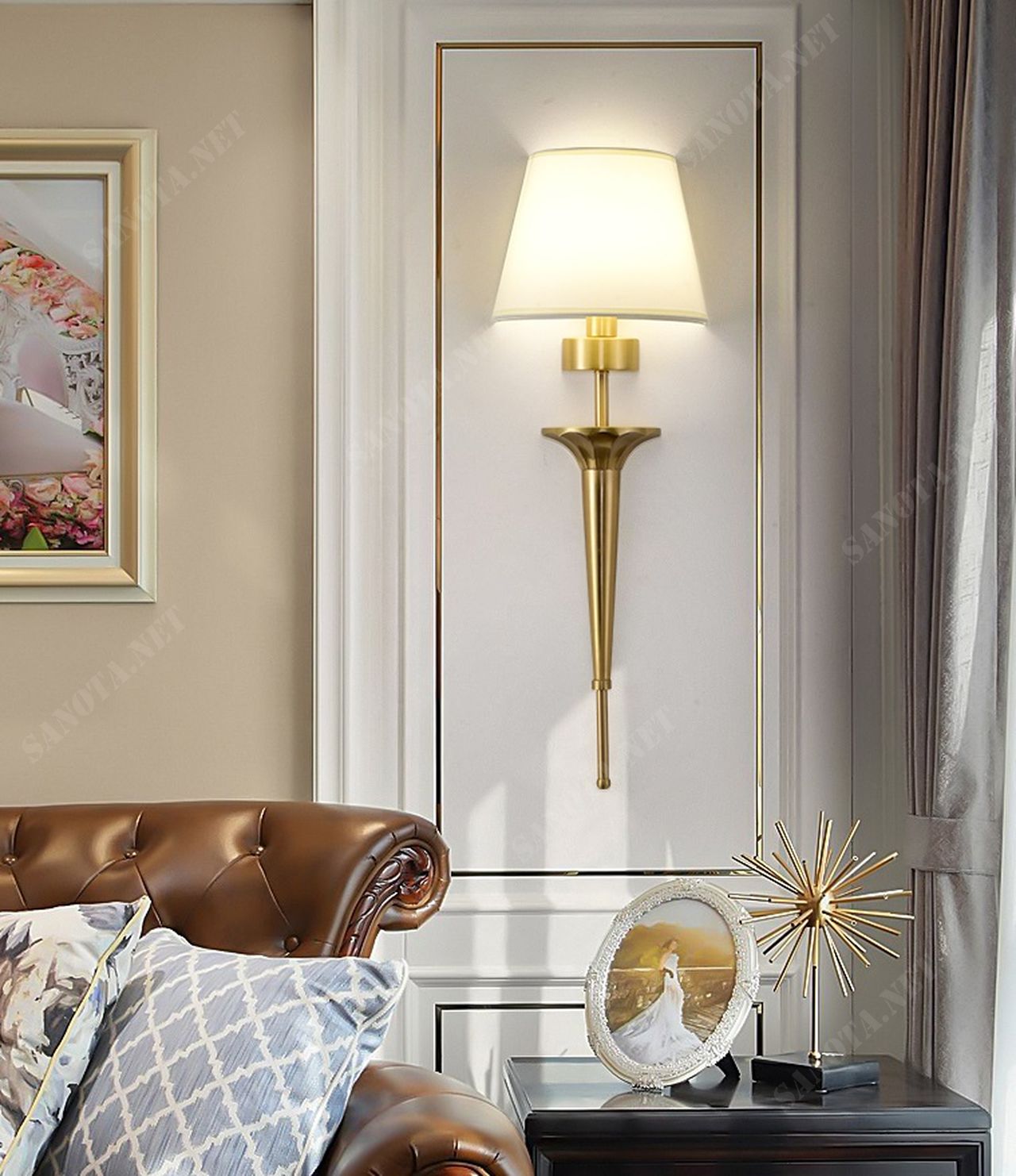 Đèn gắn tường chao vải cổ điển SNT2330 – Chiếc đèn gắn tường này tựa như một tác phẩm nghệ thuật, mang đậm nét cổ điển với vẻ đẹp sang trọng và hiện đại đan xen tinh tế. Thân đèn được chế tác từ đồng mạ vàng, tạo nên một vẻ đẹp lôi cuốn và quý phái. Sự kết hợp giữa đồng và màu vàng óng ả, làm nổi bật nét cổ điển và độ sang trọng của chiếc đèn.
