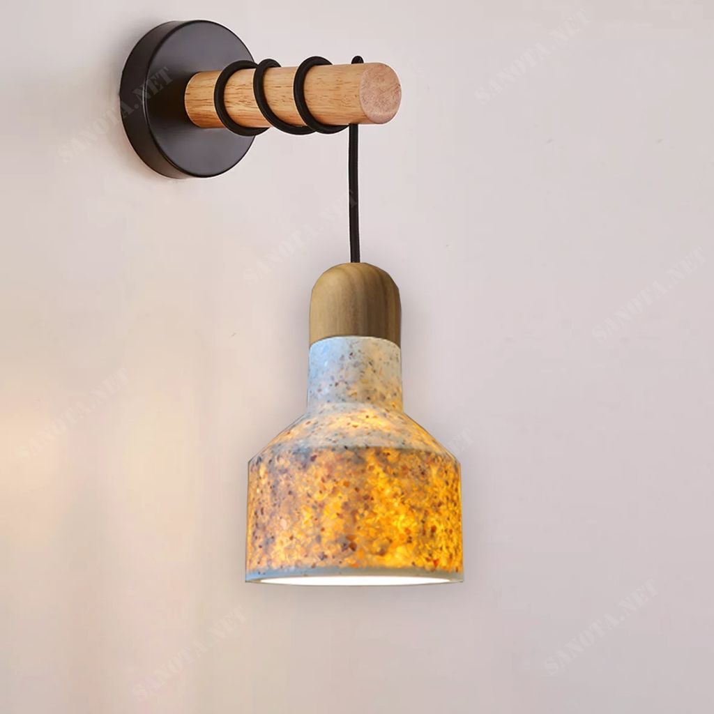 Một chiếc đèn gắn tường được chế tác thủ công từ chất liệu đá mài composite. Hay còn được biết đến với tên gọi đèn đá mài Terrazzo, đèn xi măng, hoặc đèn bê tông đá mài.
