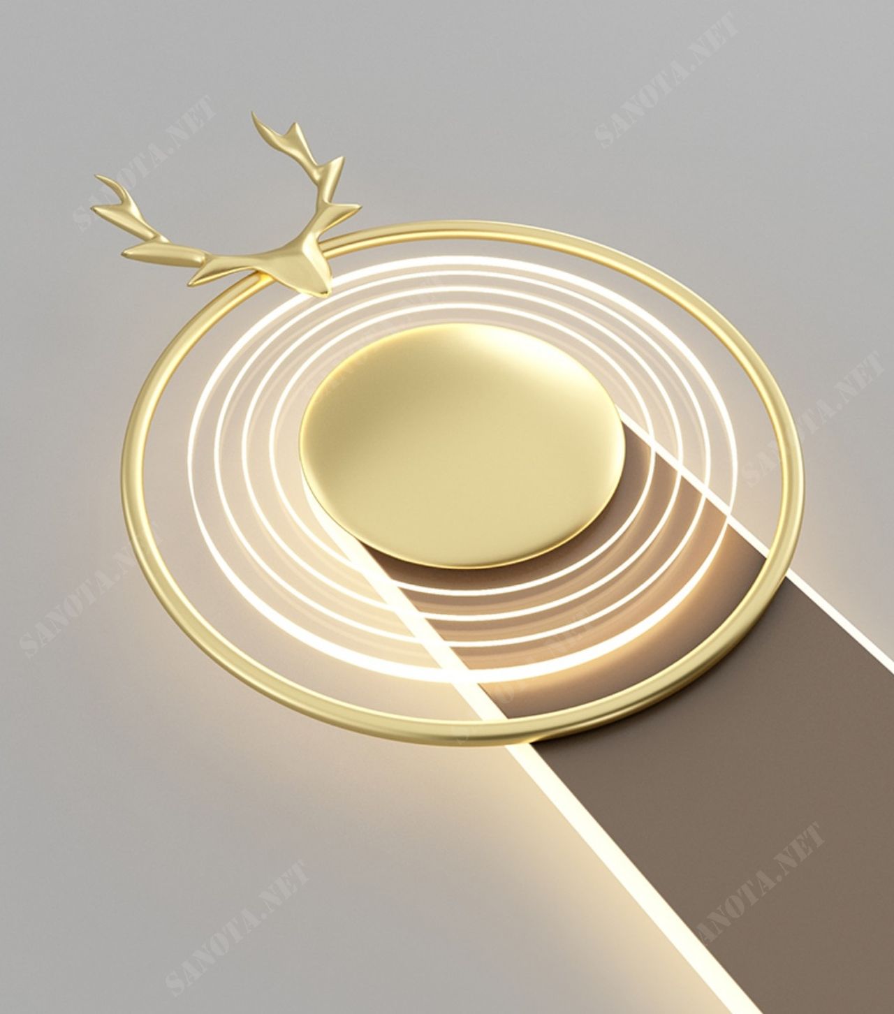 chiếc đèn led với thiết kế dây đèn led bên trong thân đèn, thân đèn màu vàng đồng và có kiểu dáng là hình bầu dục và những đường tròn kết hợp, điể nhấn là chiếc sừng hươu được đính trên đó chiếc đèn led với thiết kế dây đèn led bên trong thân đèn, thân đèn màu vàng đồng và có kiểu dáng là hình bầu dục và những đường tròn kết hợp, điể nhấn là chiếc sừng hươu được đính trên đó
