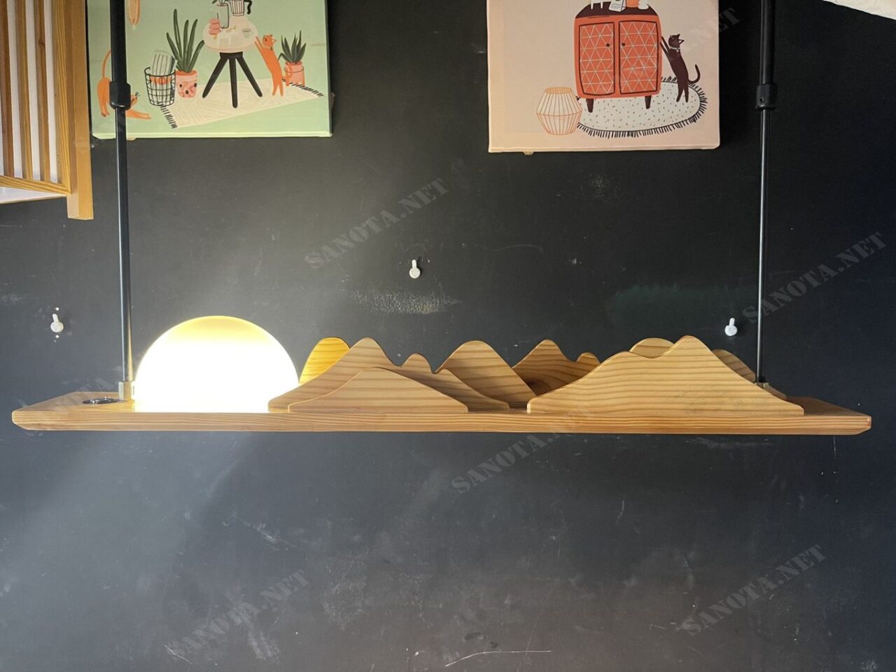 Với kiểu dáng độc đáo, được thiết kế hình ảnh những ngọn núi nhấp nhô, cùng ánh trăng tròn phát sáng. Chiếc đèn là sự kết hợp của ánh sáng đèn LED cùng với thiết kế đem đến cái nhìn độc đáo, và ánh sáng ấm áp cho không gian.