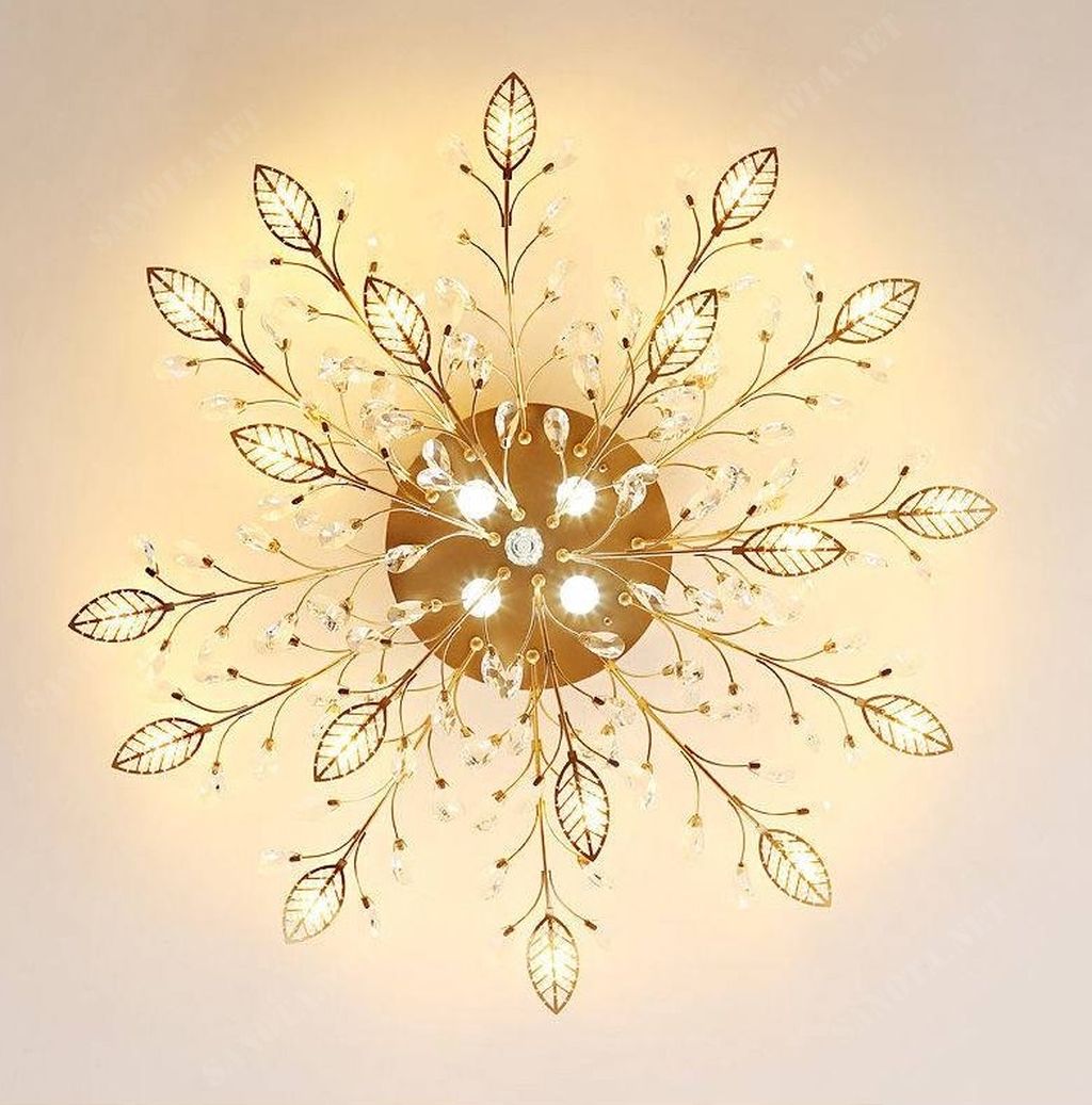 Được chế tác với sự tỉ mỉ và tinh tế, chiếc đèn chùm này mang đến một khung cảnh độc đáo như một vườn hoa ánh sáng. Những chiếc lá mảnh mai và những bông hoa màu vàng bắt mắt được sắp xếp thành một vòng hoa. Tạo nên một tác phẩm nghệ thuật sinh động trên trần nhà.