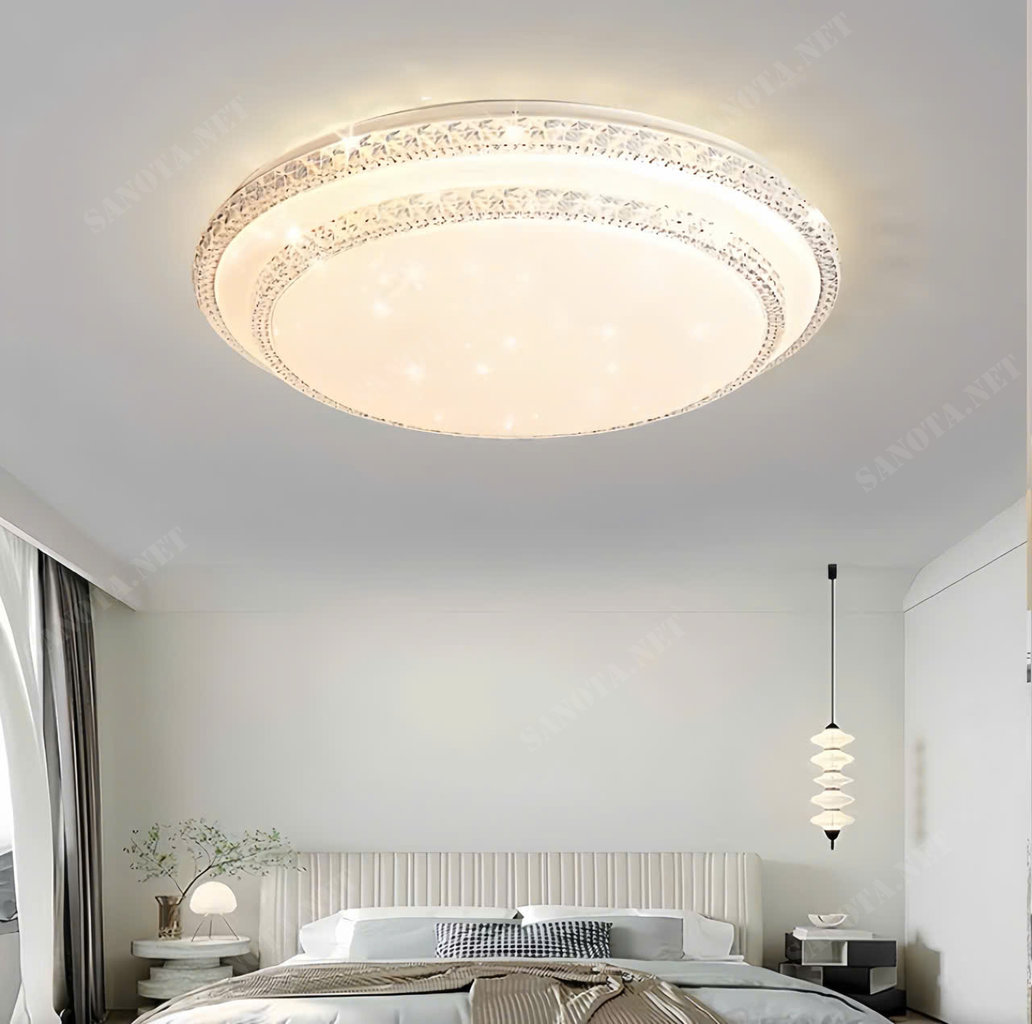 Ánh sáng LED tỏa đều qua lớp pha lê trong suốt giúp phân bố ánh sáng nhẹ nhàng, không chói mắt, mang lại cảm giác thư giãn cho không gian phòng ngủ, phòng khách. Sản phẩm đặc biệt phù hợp cho căn hộ chung cư, nhà phố hay khách sạn hiện đại.