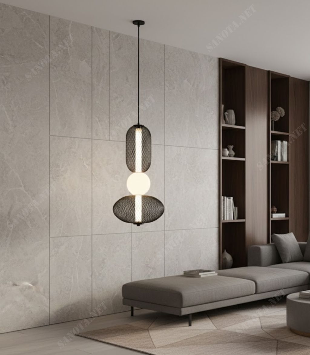 Đèn thả lưới ba tầng độc đáo mang đến ấn tượng thị giác mạnh mẽ ngay từ cái nhìn đầu tiên. Như một tác phẩm điêu khắc ánh sáng được sắp đặt tinh tế trong không gian. Thiết kế xếp tầng theo trục dọc tạo cảm giác thanh thoát, hiện đại nhưng vẫn giữ được sự ấm áp và chiều sâu cảm xúc. Phù hợp với những không gian đề cao tính nghệ thuật và cá tính riêng.