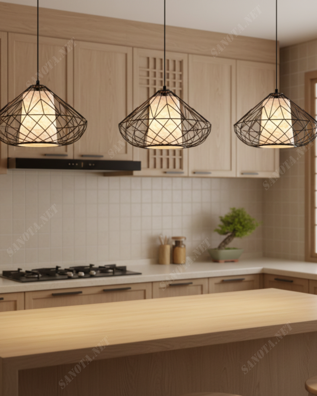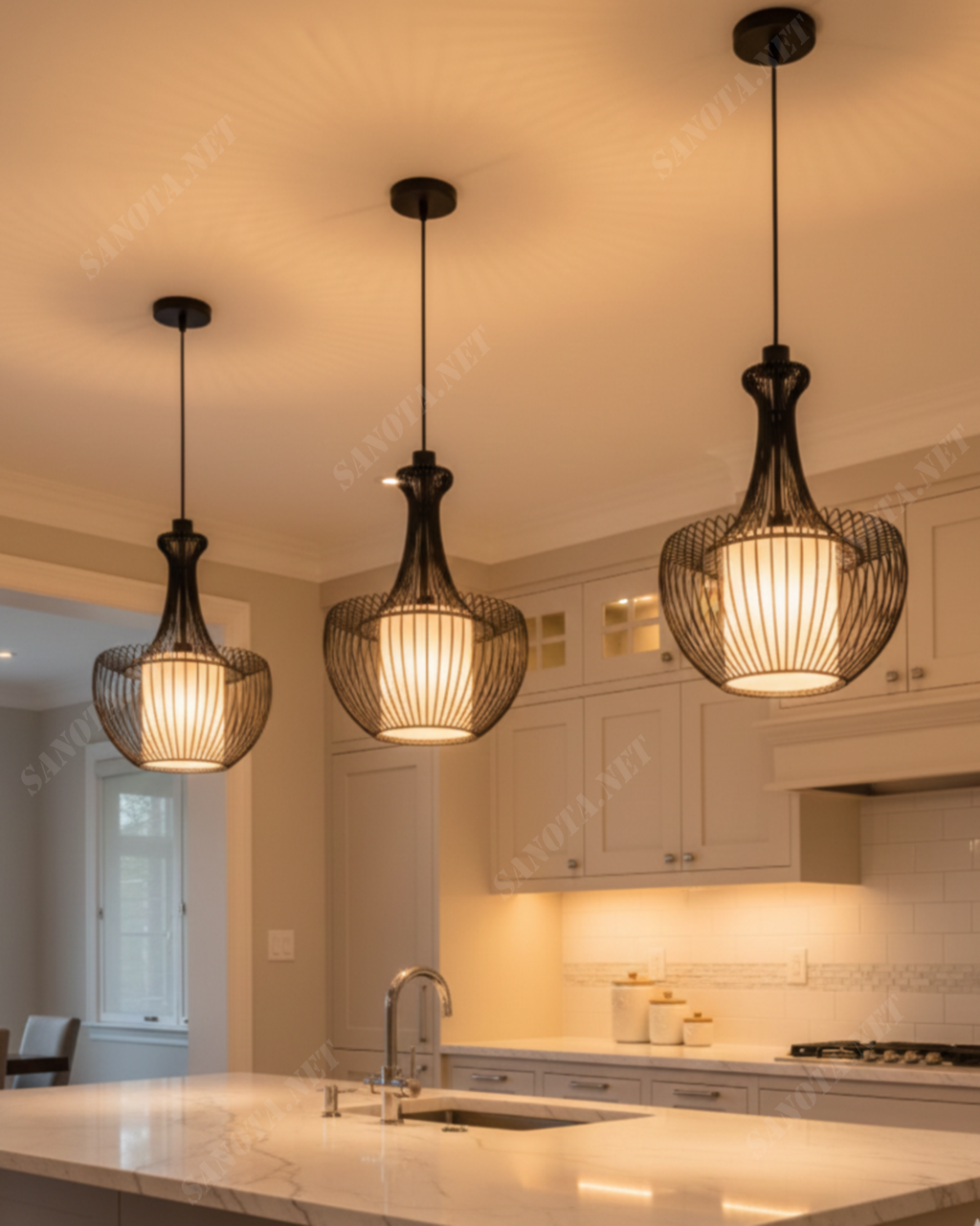 Vật liệu hợp kim sơn tĩnh điện giúp đèn bền bỉ theo thời gian. Lớp hoàn thiện màu đen mờ chống bám bẩn và rất tinh tế. Cấu trúc nan thưa giúp tối ưu hóa hiệu suất chiếu sáng. Không gian bếp sẽ trở nên ấm cúng và đầy tính nghệ thuật. Ánh sáng vàng dịu giúp tôn lên vẻ đẹp của nội thất xung quanh.