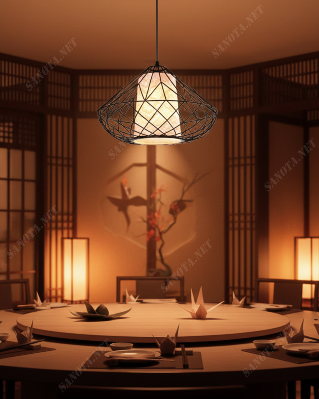 Sản phẩm lấy cảm hứng từ nghệ thuật gấp giấy Nhật Bản độc đáo với 3 thiết kế kiểu dáng khác nhau. Thiết kế kết hợp giữa khung nan sắt và lõi sáng ấm áp. Ba chiếc đèn tạo nên một tổng thể sang trọng cho không gian. Đây là lựa chọn hoàn hảo để tạo điểm nhấn nhẹ nhàng, sâu lắng.
