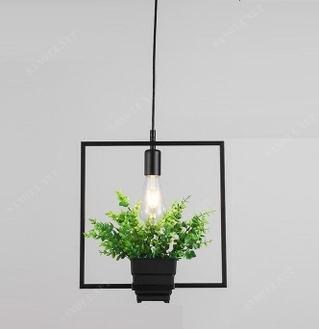 Điểm nhấn đặc biệt của chiếc đèn thả này chính là chậu cây cảnh nhỏ được tích hợp trực tiếp vào phần khung đèn. Chậu cây được làm từ gốm sứ cao cấp, với màu sắc hài hòa với tổng thể thiết kế của đèn.