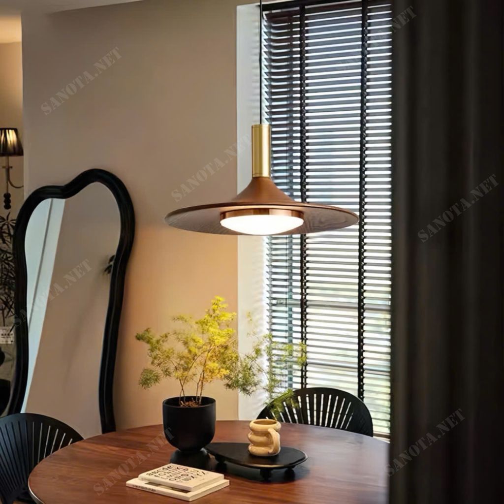 Đèn thả vân gỗ vintage mang phong cách cổ điển, ấm áp nhờ chất liệu gỗ tự nhiên vân nổi, kết hợp với khung kim loại chắc chắn. Thiết kế đơn giản nhưng tinh tế, giữ được nét mộc mạc đặc trưng của phong cách vintage. Ánh sáng từ bóng đèn tỏa ra qua chao gỗ, tạo hiệu ứng ánh sáng dịu nhẹ, ấm áp, lý tưởng cho phòng khách, phòng ăn, quầy bar hoặc góc đọc sách.