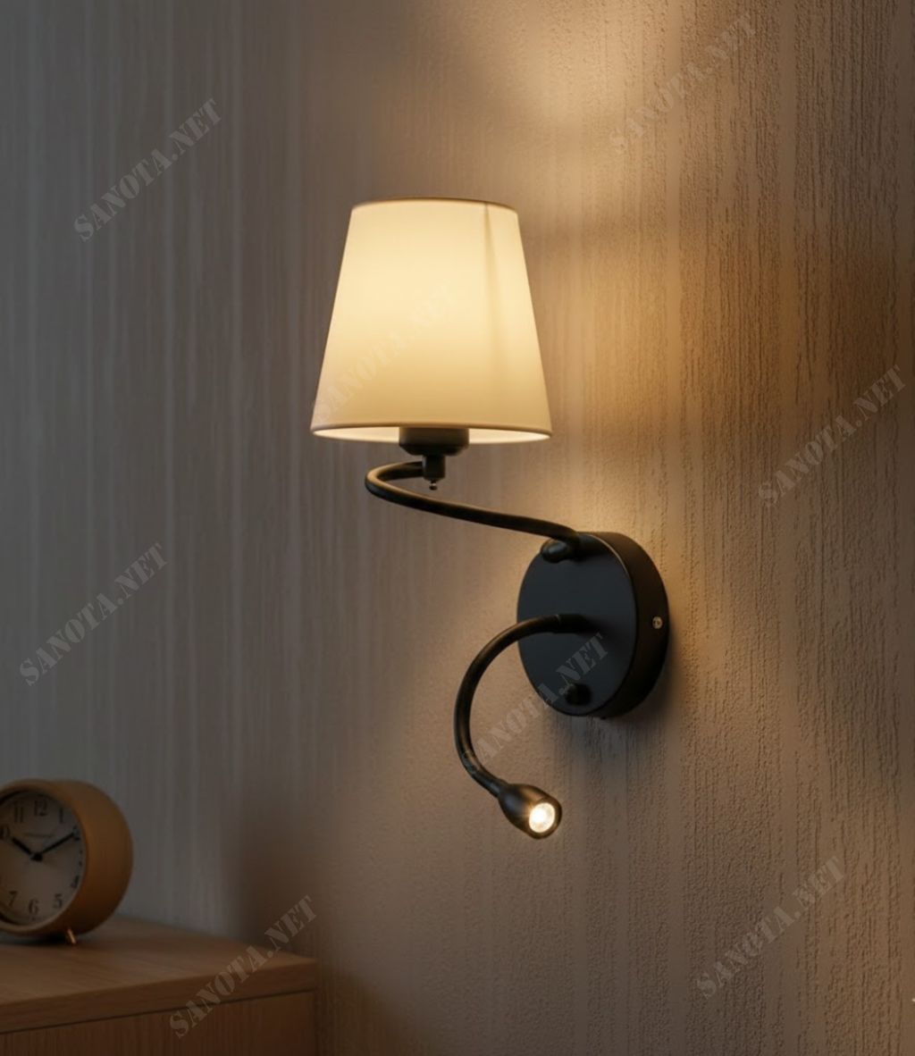 Đèn tường là sự kết hợp thông minh giữa tính thẩm mỹ cổ điển và tính ứng dụng hiện đại. Thiết kế tập trung vào sự linh hoạt của cần đèn, kết hợp giữa chao đèn vải hình nón truyền thống và đèn đọc sách LED tập trung. đèn tường này là giải pháp ánh sáng đa năng và tiết kiệm không gian, hoàn hảo cho khu vực đầu giường hoặc góc đọc sách.