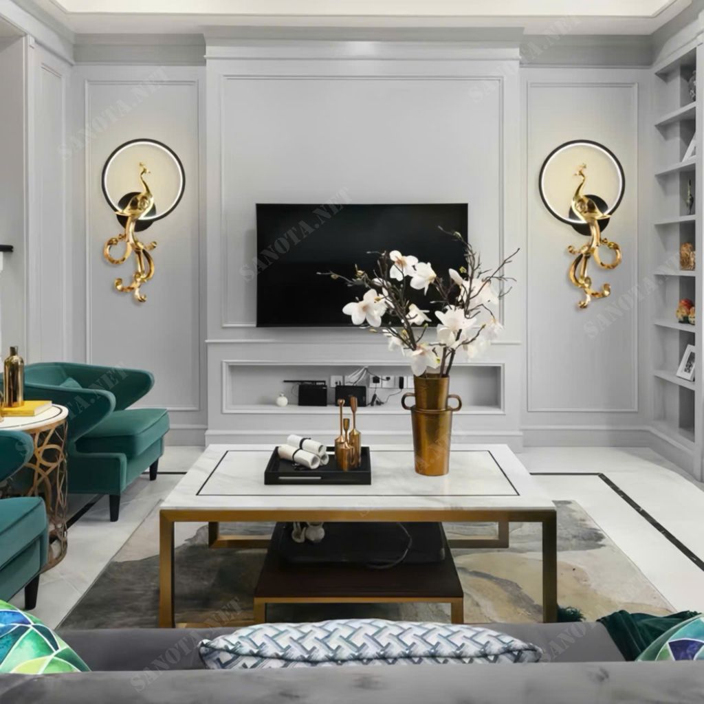 Trong nghệ thuật trang trí nội thất, sự kết hợp giữa ánh sáng và kim loại quý luôn tạo nên vẻ đẹp vượt thời gian. Đèn tường chim công màu vàng sang trọng là một tuyệt tác mang phong cách hiện đại và tân cổ điển. Sử dụng hình tượng chim công mạ vàng để khẳng định sự vương giả và thịnh vượng cho không gian.