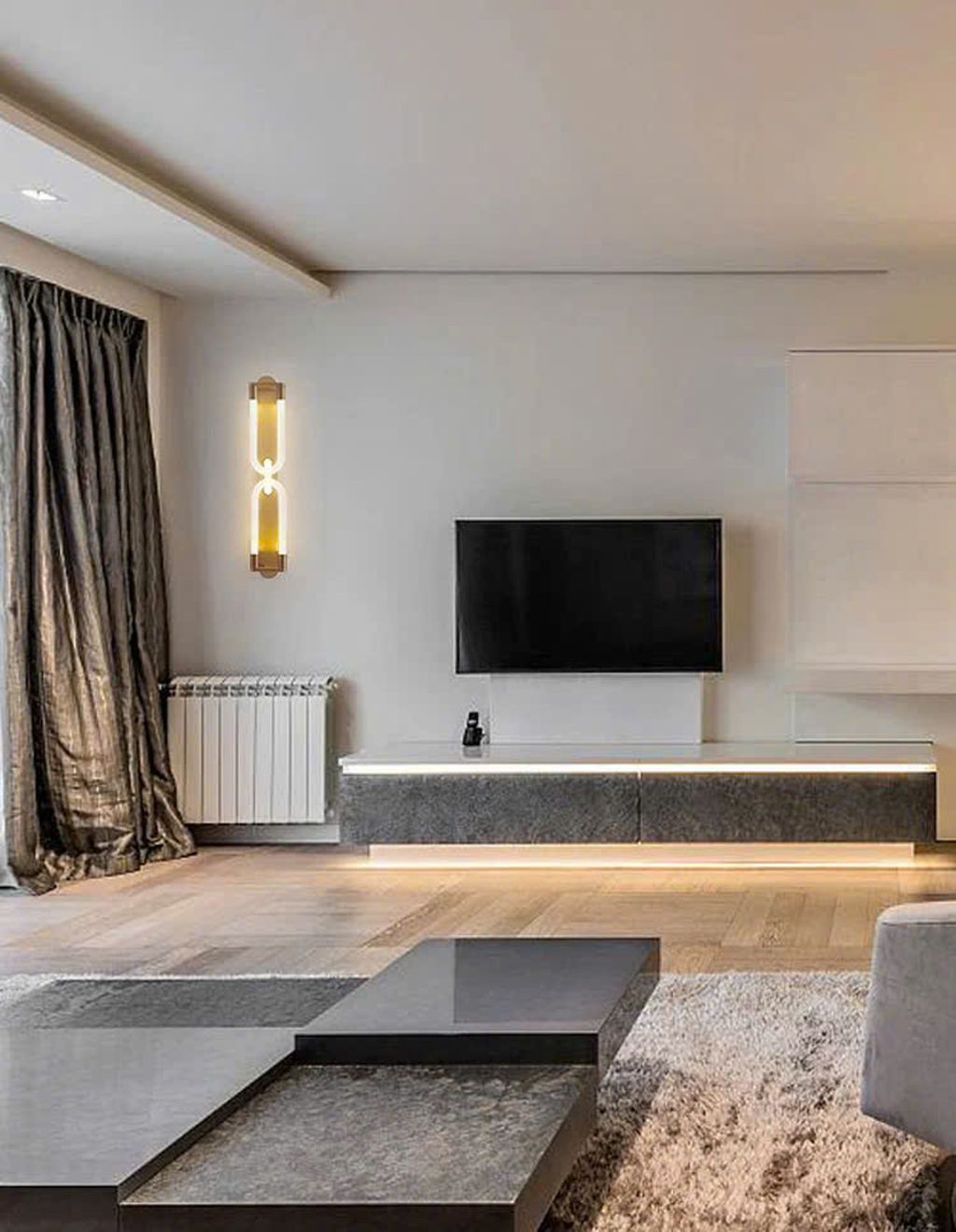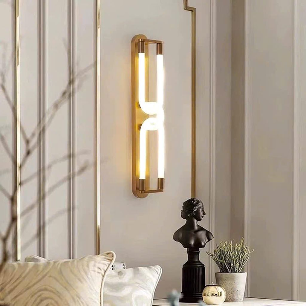 Chiếc đèn gây ấn tượng với thiết kế hình ống thủy tinh uốn cong phối hợp cùng khung kim loại xi vàng đồng sang trọng. Tạo nên cảm giác thanh lịch, nhẹ nhàng mà vẫn thu hút ánh nhìn. Ánh sáng vàng ấm từ bóng LED tạo nên bầu không khí thư giãn, ấm cúng. Lý tưởng cho phòng ngủ, phòng khách hay hành lang cao cấp.