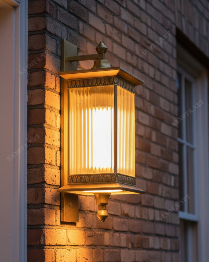 Đèn tường đồng nổi bật với thiết kế hình hộp chữ nhật đứng. Tạo cảm giác vững chãi và uy nghi. Phần thân đèn được chế tác từ đồng nguyên chất (hoặc hợp kim đồng cao cấp) có độ bền vượt trội, chống ăn mòn, oxy hóa và chịu được các điều kiện thời tiết khắc nghiệt. Bề mặt đồng thường được xử lý để có màu vàng đồng cổ kính, tăng thêm giá trị thẩm mỹ và sự sang trọng.