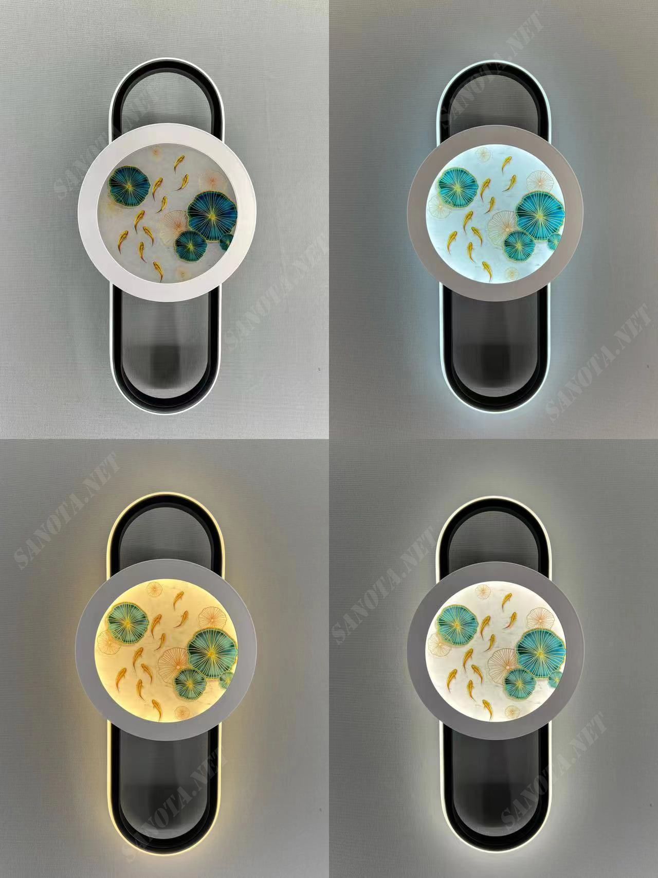 Đèn Tường Kết Hợp Tranh Cửu Ngư Quần Hội SNT2099 – Đèn tường trang trí kết hợp tranh treo tường “Cửu Ngư Quần Hội” là một tác phẩm nghệ thuật độc đáo, thể hiện sự kết hợp hoàn hảo giữa ánh sáng và nghệ thuật thủ công. Bức tranh trên đèn tường mô tả một hình ảnh tươi sáng và tinh tế của đàn cá chép đang tung tăng bơi lội dưới những lá sen xanh mướt trong một hồ nước tĩnh lặng.
